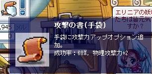 あ、どもこんにちはちょっと画像やらプロフィールやら色々いじってみました、疾風ですでまぁ牙突君の画像にしたり…まぁ実際にメイポで主に活動してるのは牙突ですからねー疾風は投げ賊(リベンジの為)で転職済みですが現在のポジションは倉庫たまに書を売る為に起動しますが今は牙突に集中してるので育成はせずという現状ま、それは置いといて早速メイポネタ-----------------------------------------------------------…と言いたかったのですがタグにあるとおり加工に追われてまして加工に追われるのも久々ですなちょっと海賊の町行ったり賊の友達とふらついたりまた海賊の町行ったりでSSが…20枚くらいありましたかなまぁ全部は貼りませんがてか久しぶりにインして久しぶりに賊の友達と会ったんですが…レベル高っFL登録したときには28の2次転もしてない賊だった覚えがあるんですが今日会ったらなんと47(48かも…)!?ゔぉい2次転してるのはまだしも抜かれるとはしかも結構な差ペットボトル装備の立派な斬りになっておられました…早おらぁ、わくわくしてきたぞぉぉぉぉあー、壊れたまぁこれで狩りも一緒にできるというもの嬉しい限りです…早でまぁその方が諸般の事情により落ちる事にまたグル狩りする事を約束し落ちで、その後ノーチラスのクエとかちょろちょろ消化した後に私も落ちまぁSSと詳細は明日の記事と言う事でと、言うわけで本日は終了ではー てかその方がここを見に来てくれるとか…やばい、人に見せれるような物になってない ←今更そういえば画像載せるのOK貰ったんだった明日載せるか