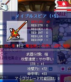 こんにちは、今日はSSがありません大した事やってないのでどうも疾風です-----------------------------------------------------------という訳でインしようとするとパッチがあぁ、パッチがあったなと思い多少(中国では多少は多いという意味らしいです日本は少ないという意味ですね)※正しいのかは分かりませんという事で中国的な多少(※)でパッチを待つうーん…そして解禁波状sがブログで書いていた&パッチ中にサイトを見ていたのでメイポ武器が出ることはお見通しっ!!しかし何を狩ろうか迷う…当然インしたら1レベ&メイポ武器を狙える狩場が好ましい…そんな狩り場…そんな狩り場… ……………… そんな狩り場ねーよwwwww(言葉遣いが荒いことをお許しください)しかし私はふとアイテム欄を見て気づく…欄空いてないな…武器も、消費も、etcもすべて少ししか空いてないのですまぁ武器と消費はどーにでもなるのですがetcはクエ品があるので捨てられない…これはクエを消化するしかないな!という事でクエ消化&受注へで、サイトで確認したカサンドラのクエへこれも目的の一つするともみじがいただけると期間中は重宝しますからね ありがたい事だ…で、他のも色々受注していき、ガイドさんに話しかけたところでふと気づく「メイポ武器と交換してください」みたいな選択肢が存在していることに!ためしにクリックするともみじ1500枚(43レベ用のはね、35(?)レベ用は2000枚)でアップグレードできるではないですか!フッ…これでベリットスピアが手に入る大体もらえるのは標準でしょうからね、苦労して、アップグレードして交換してみると粗悪、なんて事は少ないでしょう多分まぁたとえガイドにもらったのが粗悪だったとしてもドロ狙って狩って、昇華して64レベ用にすればよい!フ…完璧だ…今までこのもみじがドロする期間中は偶然にもメイポしてなかったで分かりませんが、おそらくもみじはすべての敵からドロップするはず!ていうかしないとおかしい!フッフッフ…これで好きなように狩りが出来ることが証明された…そして私にはカカシがいる…神がかっている…そうです、案山子を倒し、ETCを交換していくとと先日の記事で書いたように書と交換できるのです(原石も必要ですが)カカシを倒してカカシのETCをゲット!たまったら交換して書をゲット!(100%ですが良いのです!)ついでにもみじも出てメイポ武器をアップグレード!64レベ用のメイポ武器ゲット!という算段なわけです…完璧だ…カカシが物足りなくなったら中級修練場、上級と行けばいいということは移動しなくてもいい期間中は限定クエ以外はしません!完璧ジャマイカただ…ETCがね…ということでクエを次々消化しかし期間限定クエのケーキやらで圧迫されていくが、そこそこ空きがケーキなんて捨ててくれるわっ!という事で空き作成完了残るはカカシ狩り…というところで今日は終了明日からが本番ですという事で終了では~ 予想外なことがありそう…悪い意味で-----------------------------------------------------------加筆 間違いがあったので訂正しましたまぁ最後に書いた「予想外なことがありそう」というのは当たってましたねこれも早とちりが引き起こしたことかまぁ計画に支障はありませんがついでにいうと私は●周年記念キャンペーンというのを体験したのが初めてなのでアップグレードできることも知りませんでした…
