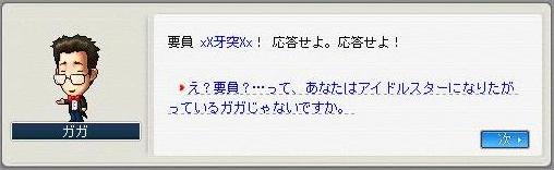 明けましておめでとうございますとりあえずPC買い換えました=メイポOKまぁもうやったんですけどねとりあえず新しいPC不便ですね…お気に入りに入れていたサイトや以前使っていたツールのダウンロードやらまぁ一通り終えたと思いますが何か忘れている気が…ていうかニコ動の気に入っていた動画をほとんど覚えてないという…確かデジモンのバタフライやらOPやらが入ったベストやひぐらしのyouでしたっけ?あの「あーなたは今ーどこで何ーをしていまーすーかー」↑だけ見るとゆるそうな歌に見えますねまぁ大半の人は知っているだろうからどんな歌かは分かるだろうそれは置いといて、ニコ動の大半覚えてないんという…まぁ…そのうち思い出すだろうという事でメイポ------------------------------------------------------------実は昨日もやっていたのですが書き忘れたので2日分まずは昨日の記事から 昨日の記事まずペットが生きていた事にビックリてっきり人形に戻ったかと…まぁ少ししたら消えましたがね!ていうかペット数日しか使ってないと言う… その後なんとなく宅配業者に話しかけると蓮sから宅配があるそうでエメラルドドーム(だったはず)が送られていましたがどうやら30日を過ぎていた様で消えてしまった模様…すみません蓮sそしてとりあえず狩りなんとなくC-3へどうせ空いてないだろうなーと思っていたのですがスッカラカン人っ子一人いませんということで久しぶりに狩り開始…良い所なのかがよく分からん…とりあえず5分2.5%位なので自給30%程度の計算確か前ロイドで狩った時も同じくらいだったなぁ…でも今はLvが違うわけで…よく分からんなぁまぁロイド行くのも何なのでここで狩る事に変態ルック牙突ネオロイド(名前長いので)を戦うの図 (振り下ろしだと3桁が出るのですよ…まだ早いのだろうか…)で狩っていると Dロイド出現狩っても全然出ないからてっきり出なくなったのかと思ってましたわでまぁ倒しにかかるのですがいかんせん命中しない確か前調べたときにモンスターLv70とかあった気がする…気のせいだろうでもまぁ少しずつダメージを与えていき撃破毒霧使うわ、被ダメ1000喰らったりビックリですわHP見てなくて何度も死に掛けた…でその後は倉庫キャラを確認しにでごちゃごちゃやっているとこんな拡声器がほー、アイツ150行ったのかーと思いつつ牙突で再びインで祝福していると何を思ったのかジイが帰r!ブフッ∵(´ε(○=(゚∀゚ )ホント何言ってるんでしょうね、あの野郎はホントに…全部俺のおかげに決まってんだr!ブフッ∵(´ε(○=(゚∀゚ )でその後はもう遅かったのでログアウト ------------------------------------------------------------ 今日(土曜)の記事 今日もC-3昨日同様ガシガシ狩っていると珍しく人が 珍しく人が来たなーと思ったら「機械心臓が持ってませんか」と聞かれ、持ってませんと言ったら何処かへま、そんなもんですわなで70%くらいまで溜めたところで一旦切りにし、いまだに習得していなかったメーカーの存在を思い出し習得に前提クエをやってあるのかを覚えてませんでしたがやってあったようでそのままクイズに1問目、「無から物を生み出すことを何という」的な問題……… 前提クエやったの何ヶ月も前だから覚えてねーよwwwwwwwですがまぁ何回も挑戦しクリア今更感満載なメーカー無事習得 その後は賽銭で鏡餅でもいただき、ついでにおみくじでも引こうと思いきのこ神社へ…持ち合わせが少なかったので10k入れたら焼きそばが……( ゚д゚) 、ペッ おみくじの結果は小吉でしたよ巫女に聞くと豚の頭100個持ってこいとのことあーひゃっゃっひゃ (≧∇≦)ノ彡☆バンバン巫女の野郎…ま、やる訳ないですがね!で神社近くでうろうろしていると見知らぬ人から話しかけられてる気がぶっちゃけスルーしようと思ってましたが内緒で「俺、鼻炎」的な事を言われその後狩りに誘われオルビスへ船中でアルファベットのMを並べ始める鼻炎…隣にいる私はどんな思いで見ればいいのかとりあえず隣で生温かく見守っていましたていうかその後何を思ったかモンスターブックを見ていると……………… でまぁオルビスで何をするかというとJr黄色いの(名前忘れた)を狩るそうですそうこの可愛らしいJrなんちゃらをで鼻炎がLvアップしたので提灯へ行こうと空いてないんじゃないかと思ってましたがあっさり空き発見で、狩っていると鼻炎が聖魔にキャラチェンジさらに狩り続けていると俺がLvアップwwwwwwwwwwwwww アッヒャッヒャ (≧∇≦)ノ彡☆バンバンそして落ちいやー、Lvアップできてよかったですよ、ホントていうか蛇矛だとネオロイドにちょくちょく外すので今回もらった分はDEXに回すかな…素DEX50になるけどいいやていうか拡声器でよく●●ニートという名前のキャラを目にするのですがアホかと思うのは私だけでしょうか…ニートであることが自慢かのように冗談なのか本気なのかがよく分からん、これがメイポクオリティー… オマケ確かに…