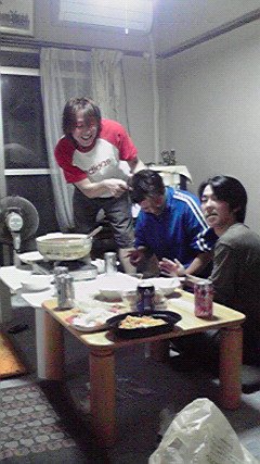 いつものメンバーでつ!! まちあきは具合が悪くて寝てるみたいです(._.) 「みんなピースしてぇ~」って言ったら、たいらさんが「しん、髪の毛薄くなってるぞぉ!!」って(笑) この後、かなり落ち込んだのは言うまでもありません(^_^;)