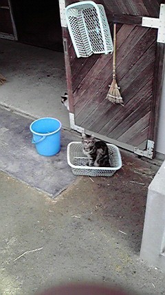 馬の上から撮りました! やっぱりアッキーナは可愛いなぁ\(^-^)/ でも、なぜうちの猫はそこが好きなんだろう(^_^;)? しつこいようだけど、お馬さんのボロを拾う道具ですから(笑)そこゎ!!