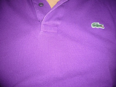 今日着ているラコステ。あまりにも鮮やかなパープルで僕には似合わないかも・・・と思ってました。
