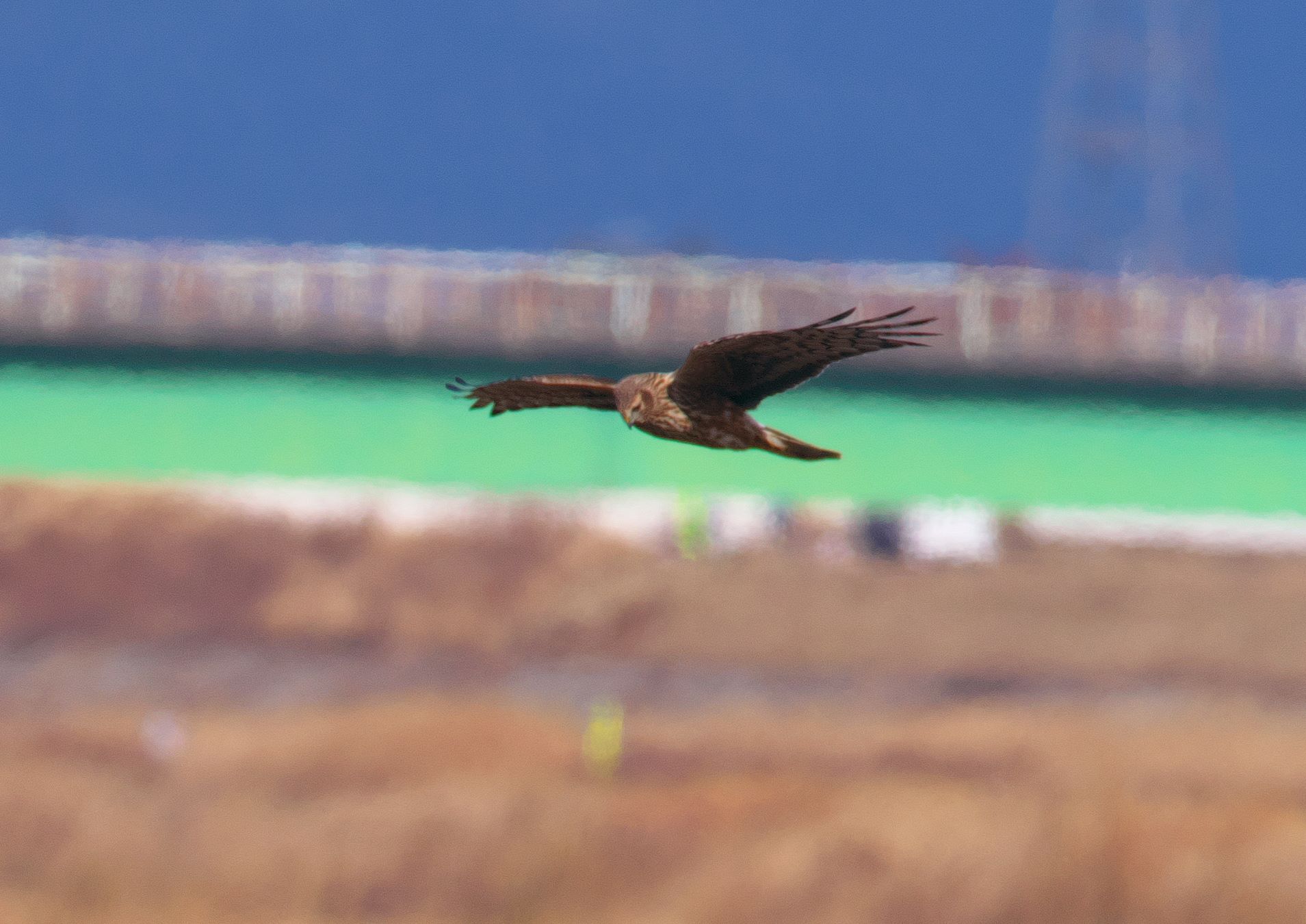 何か、低いところを飛んでいるトビがいるなと、自転車にまたがったまま1-2枚撮ったところ。。。