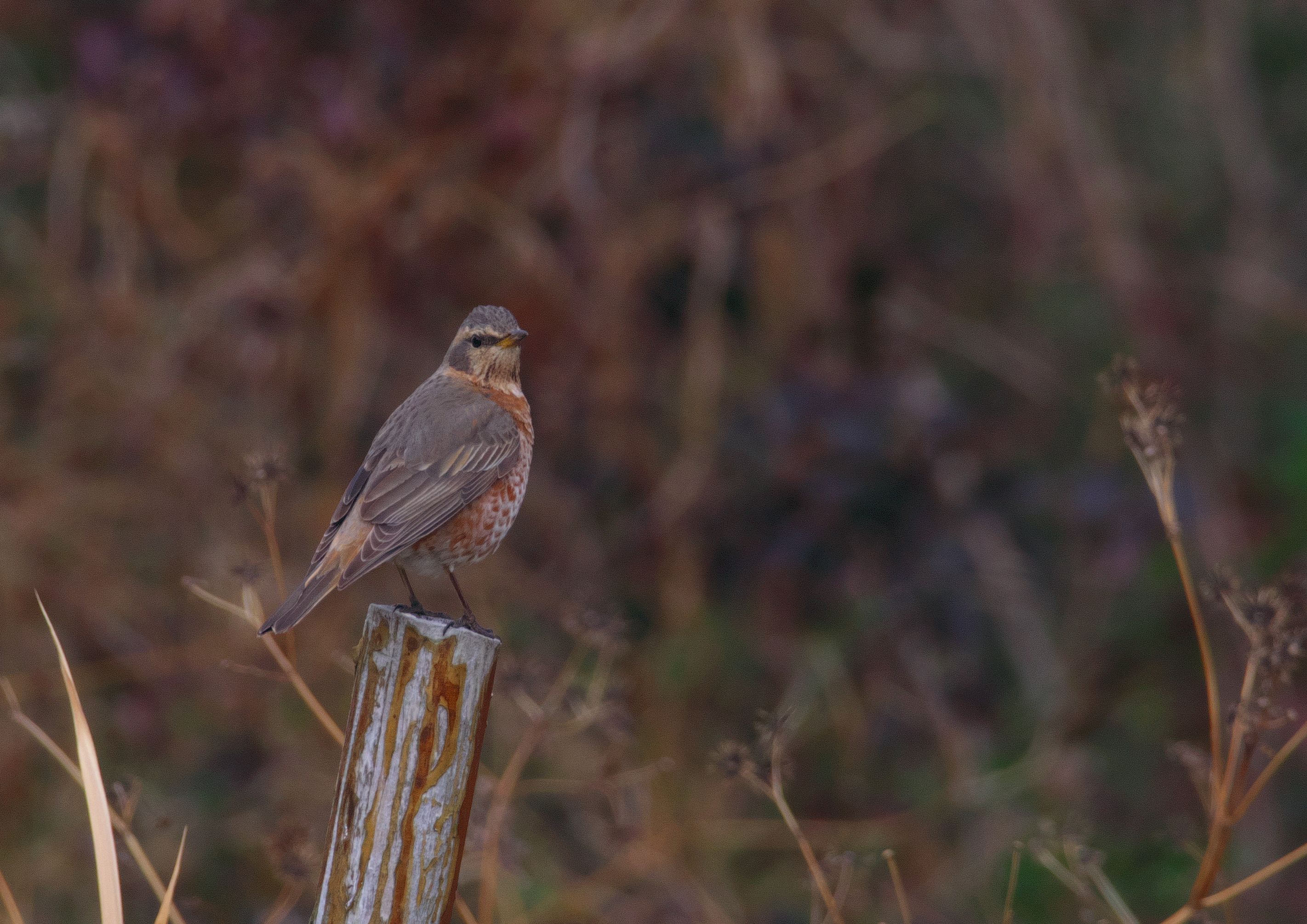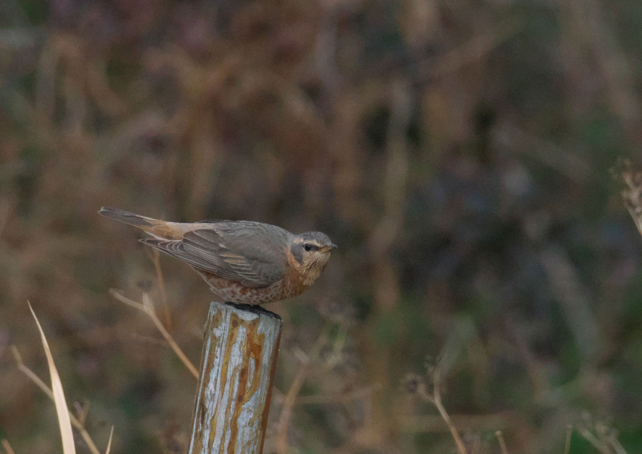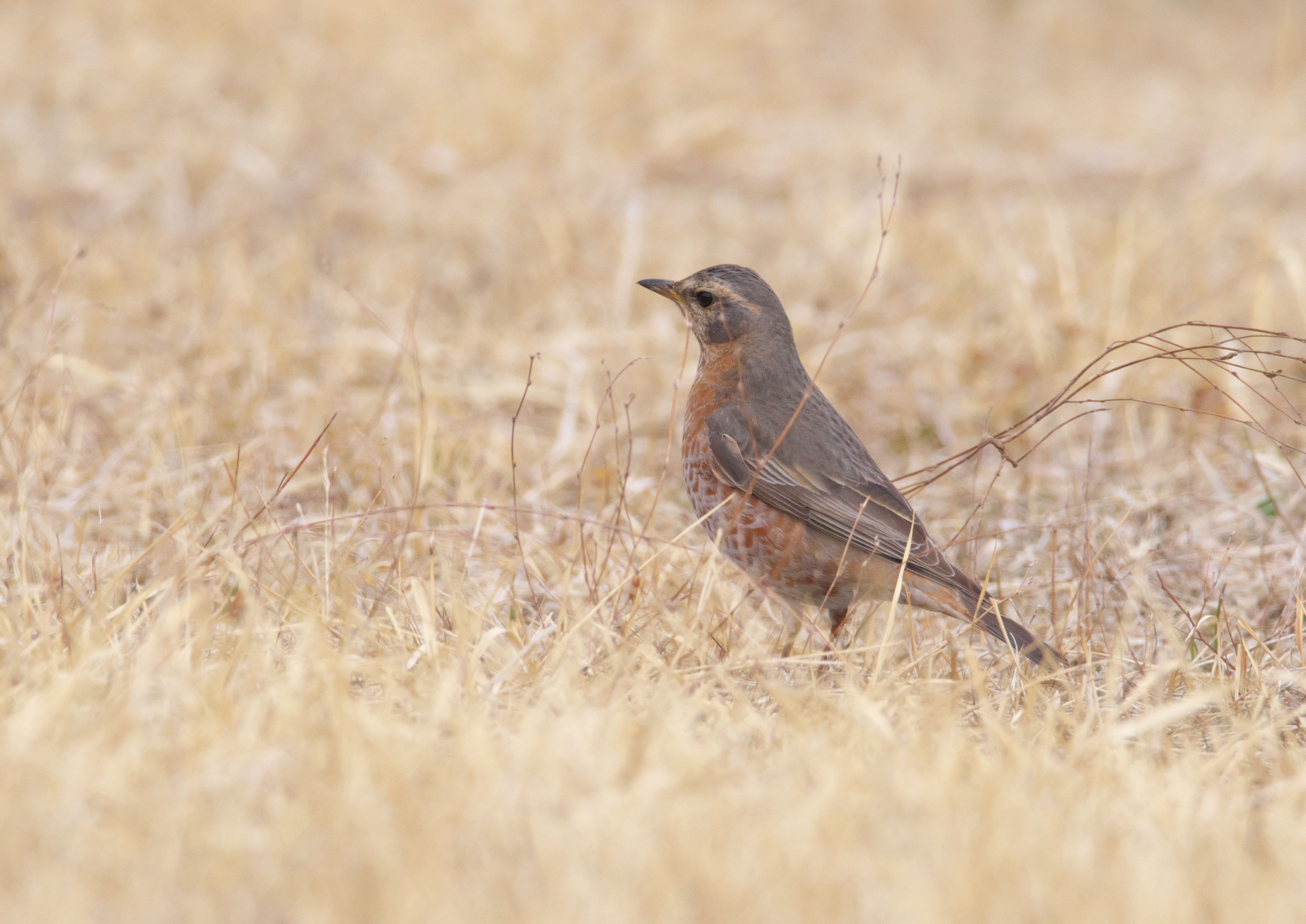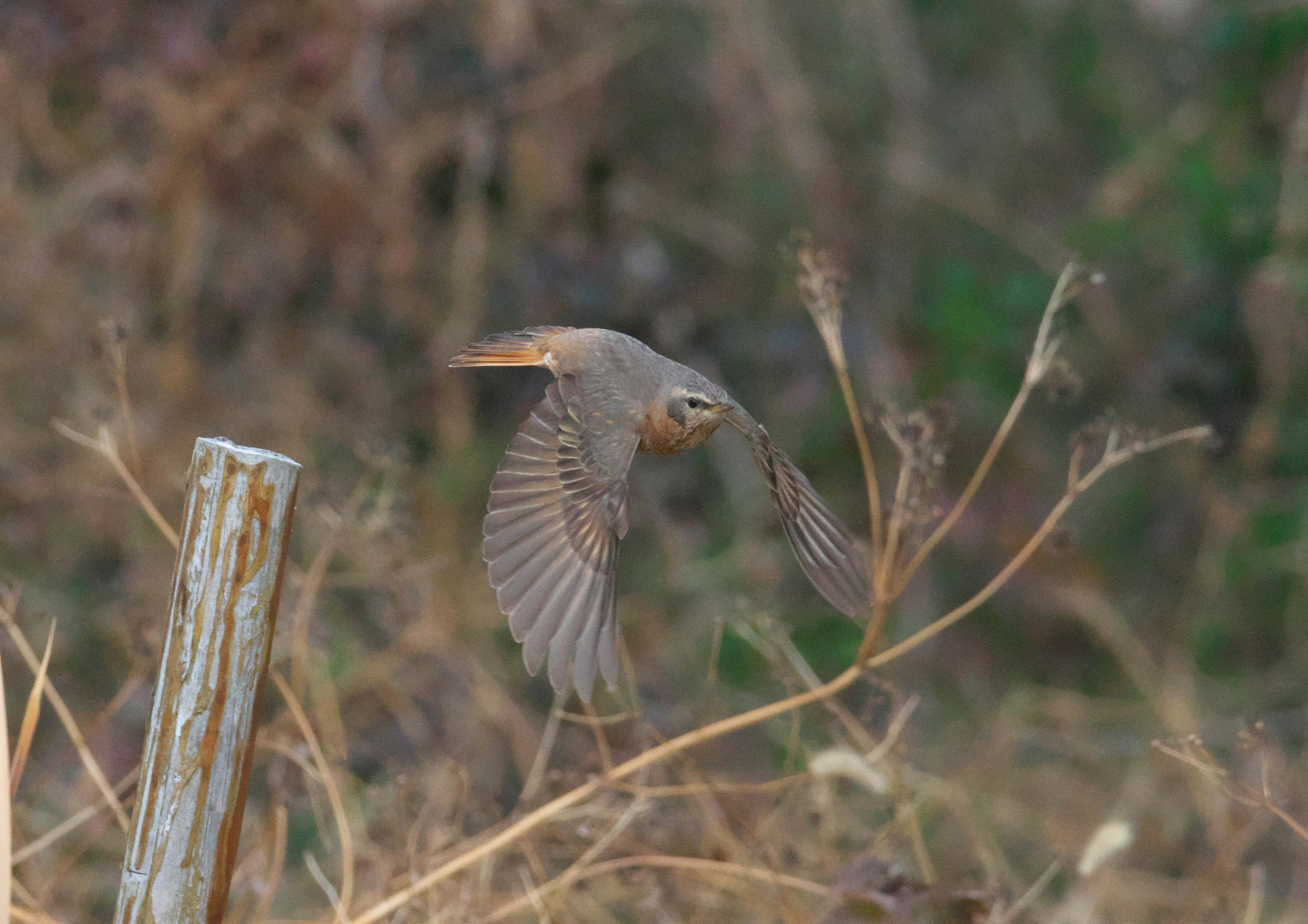 もうここで堤防は終わり。残念見つけられずかと思ったら、最後の最後がハチジョウツグミでした。