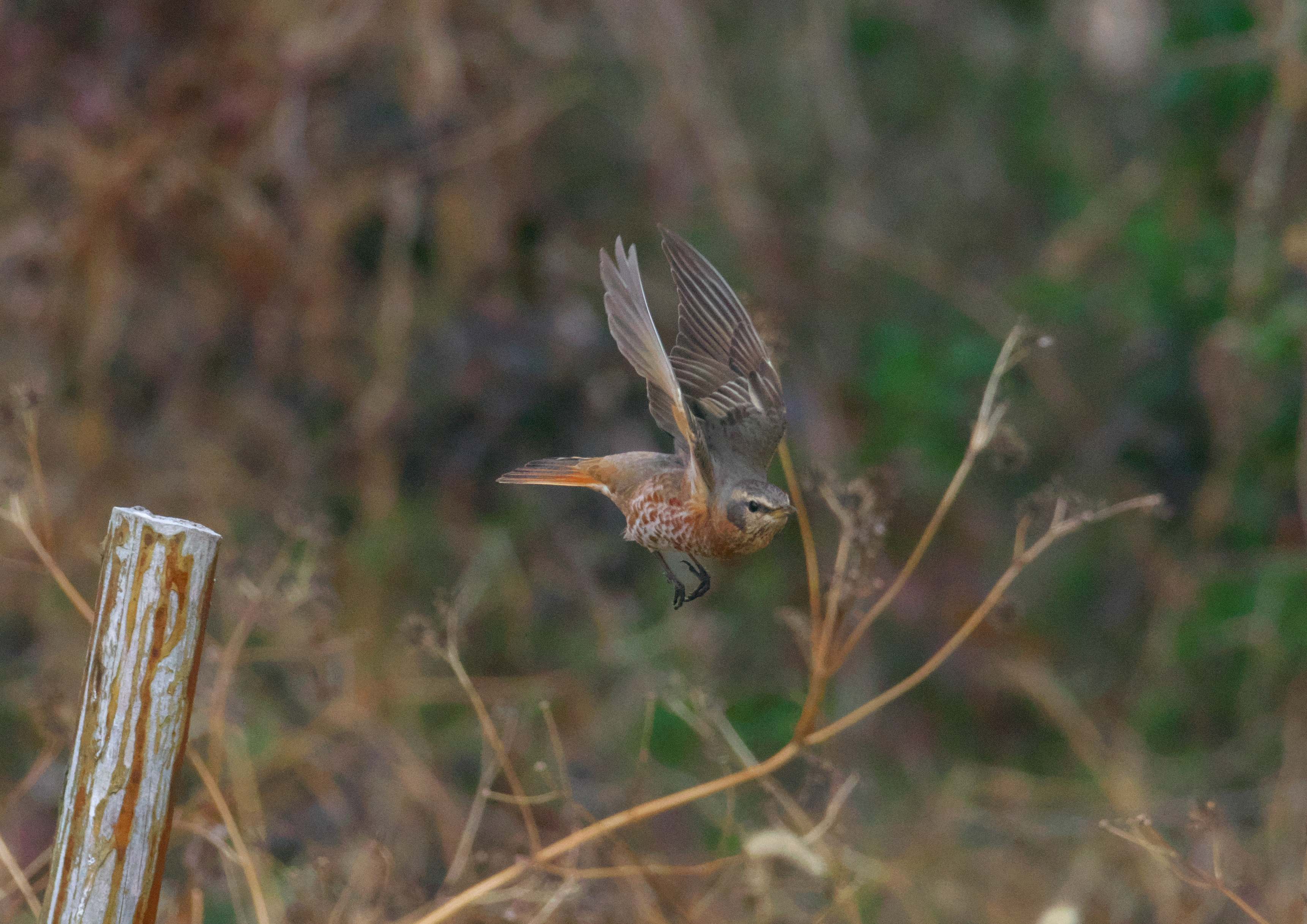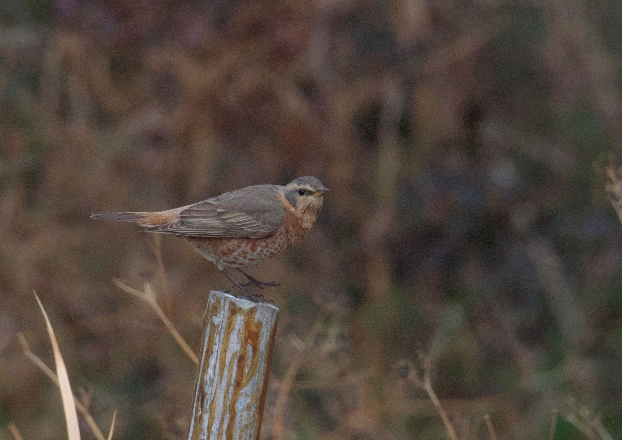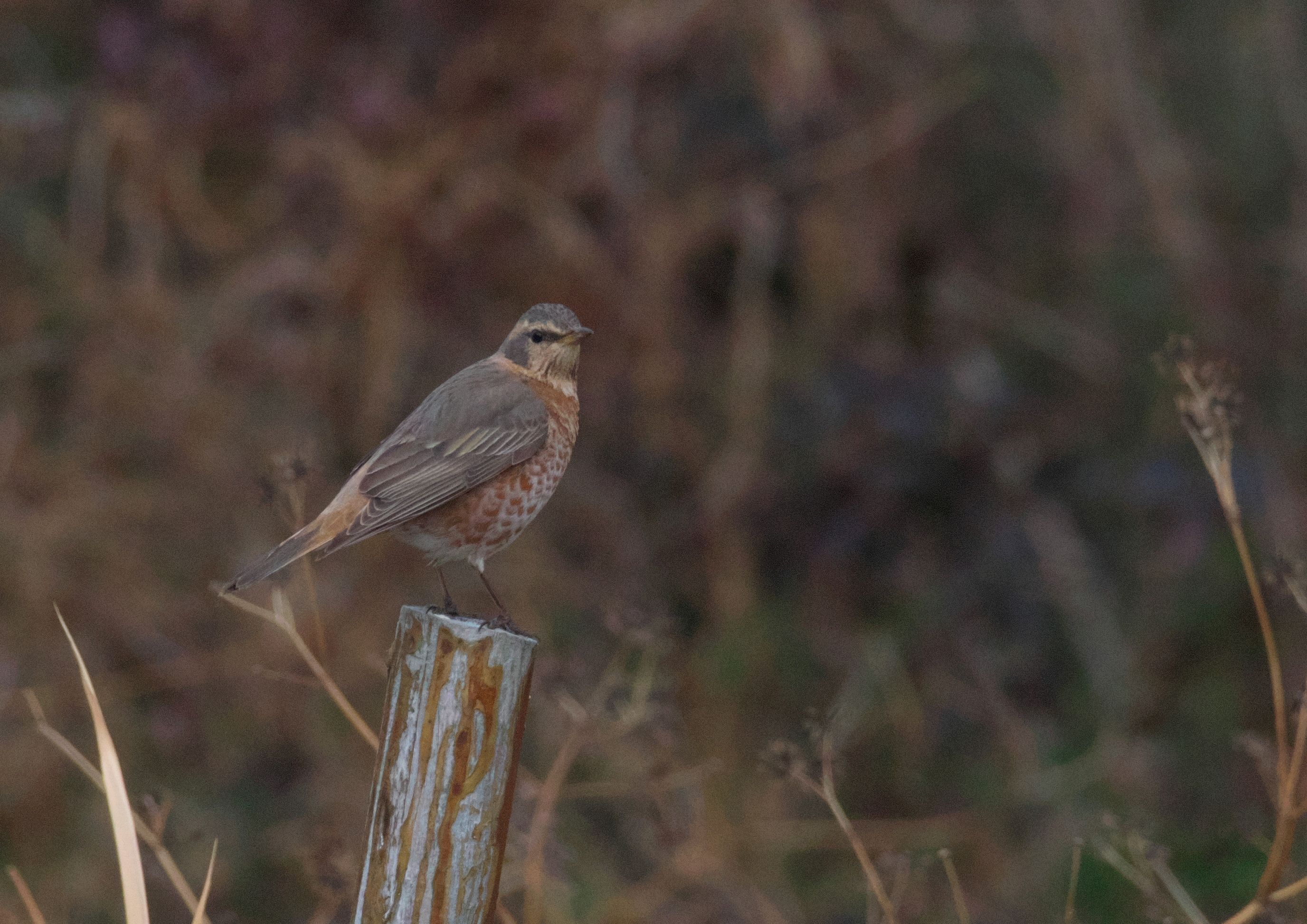 もうここで堤防は終わり。残念見つけられずかと思ったら、最後の最後がハチジョウツグミでした。