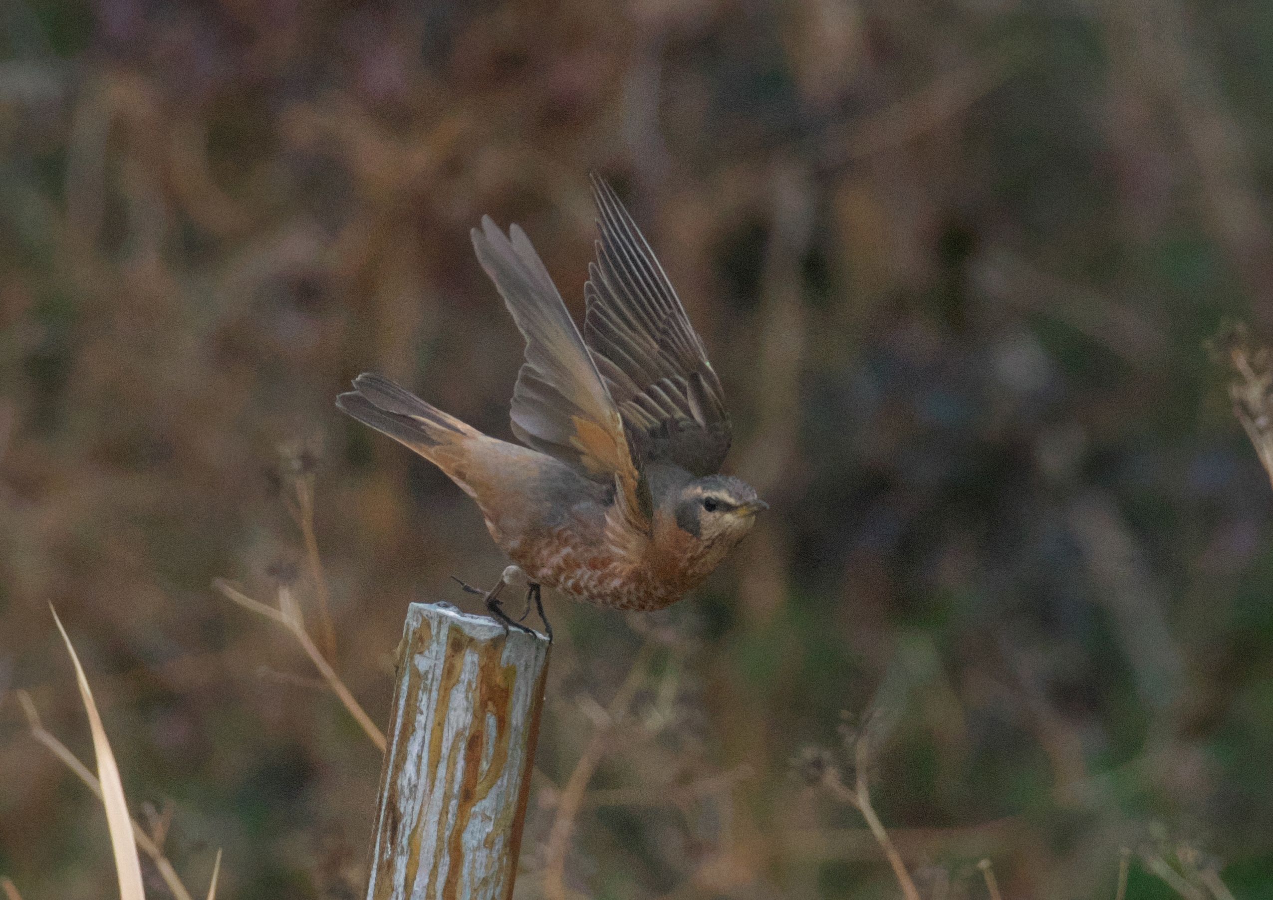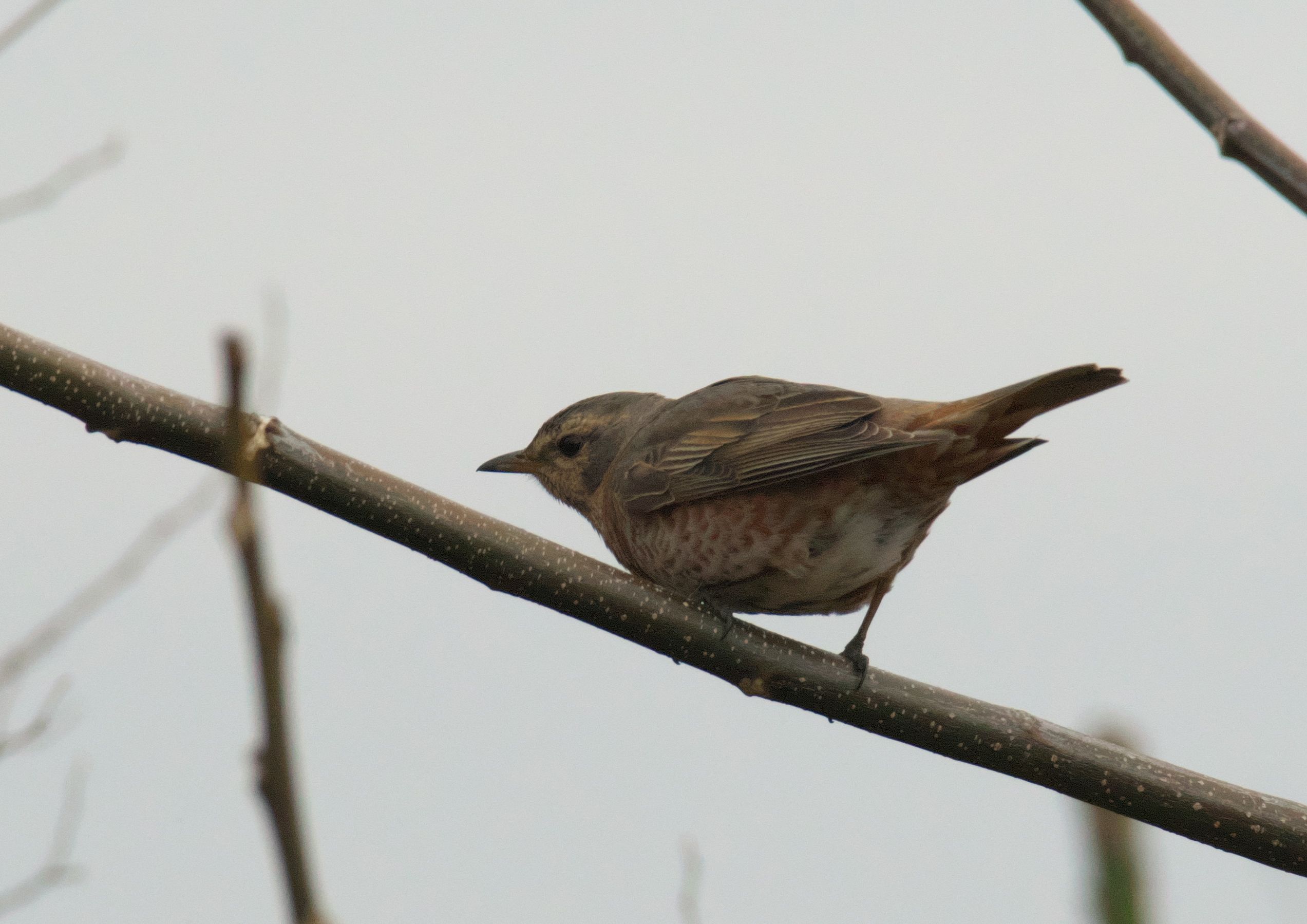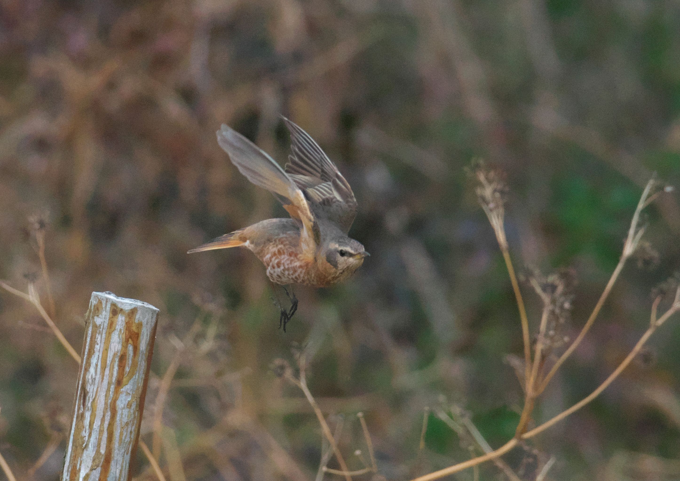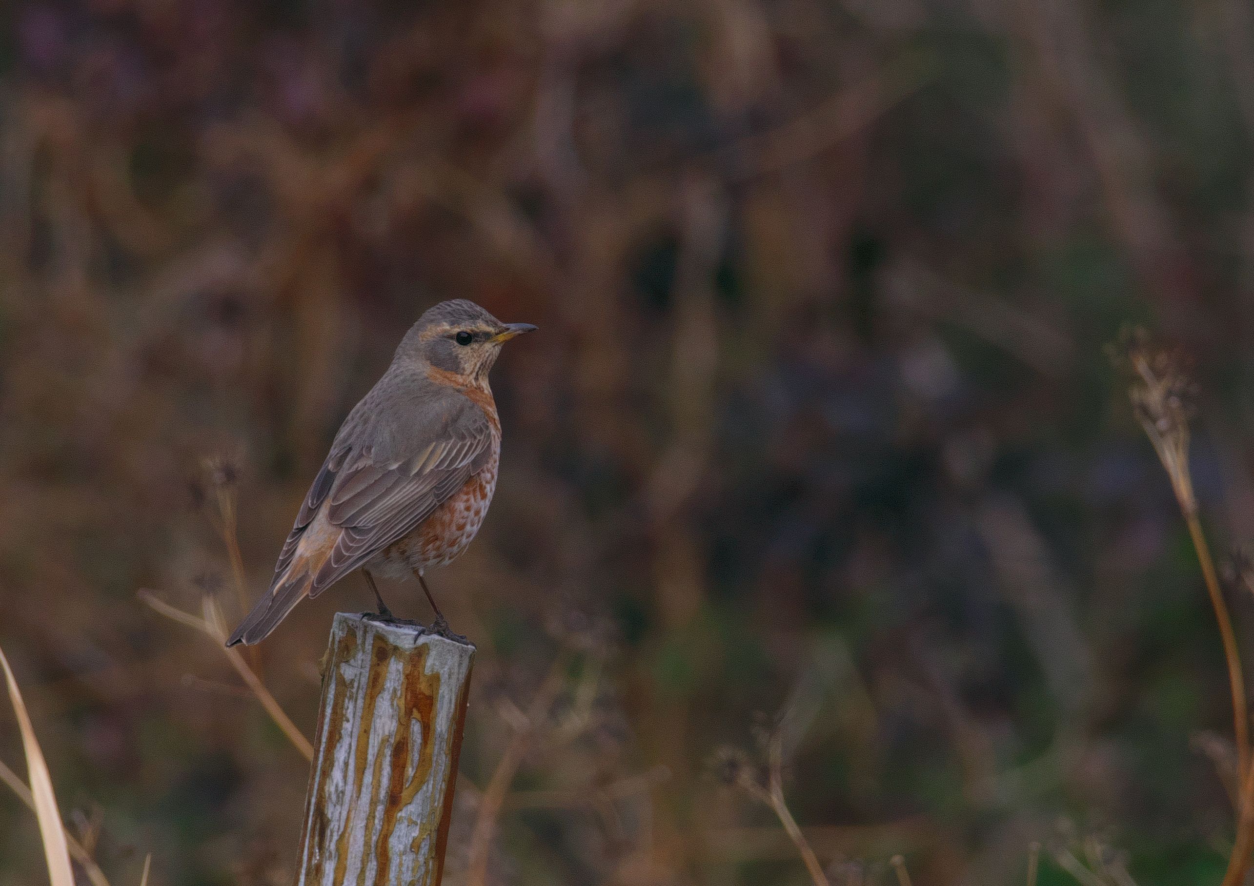 もうここで堤防は終わり。残念見つけられずかと思ったら、最後の最後がハチジョウツグミでした。