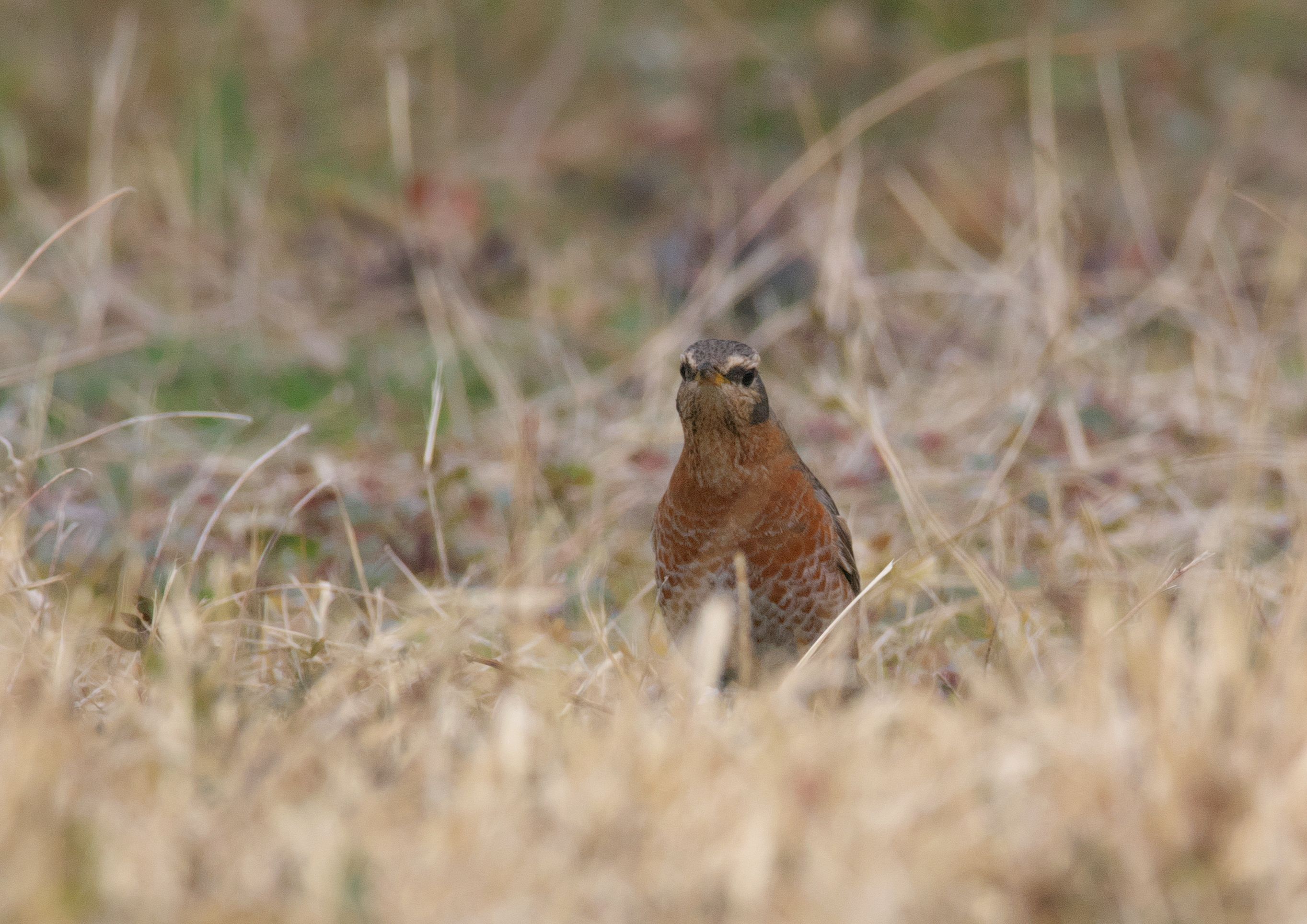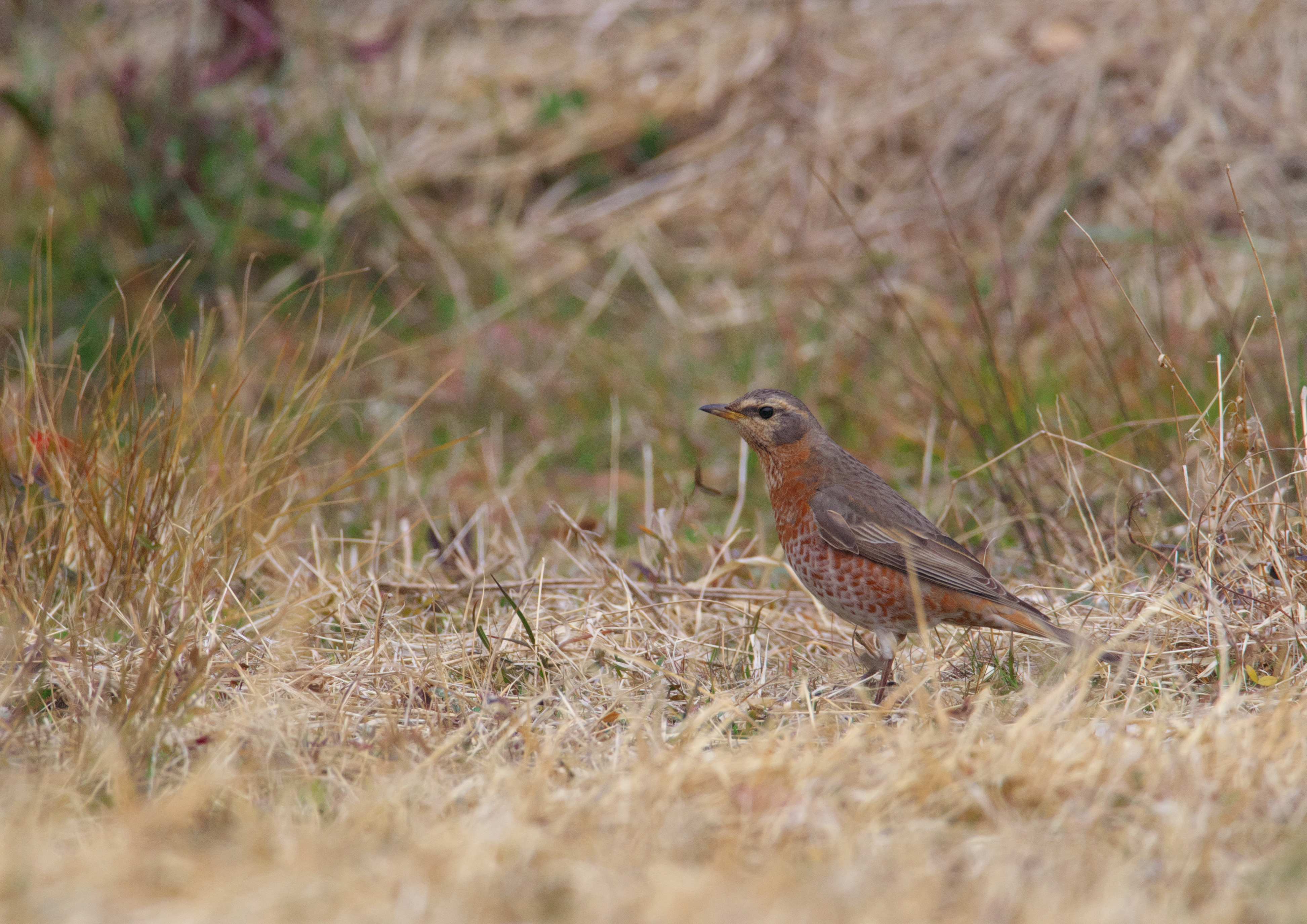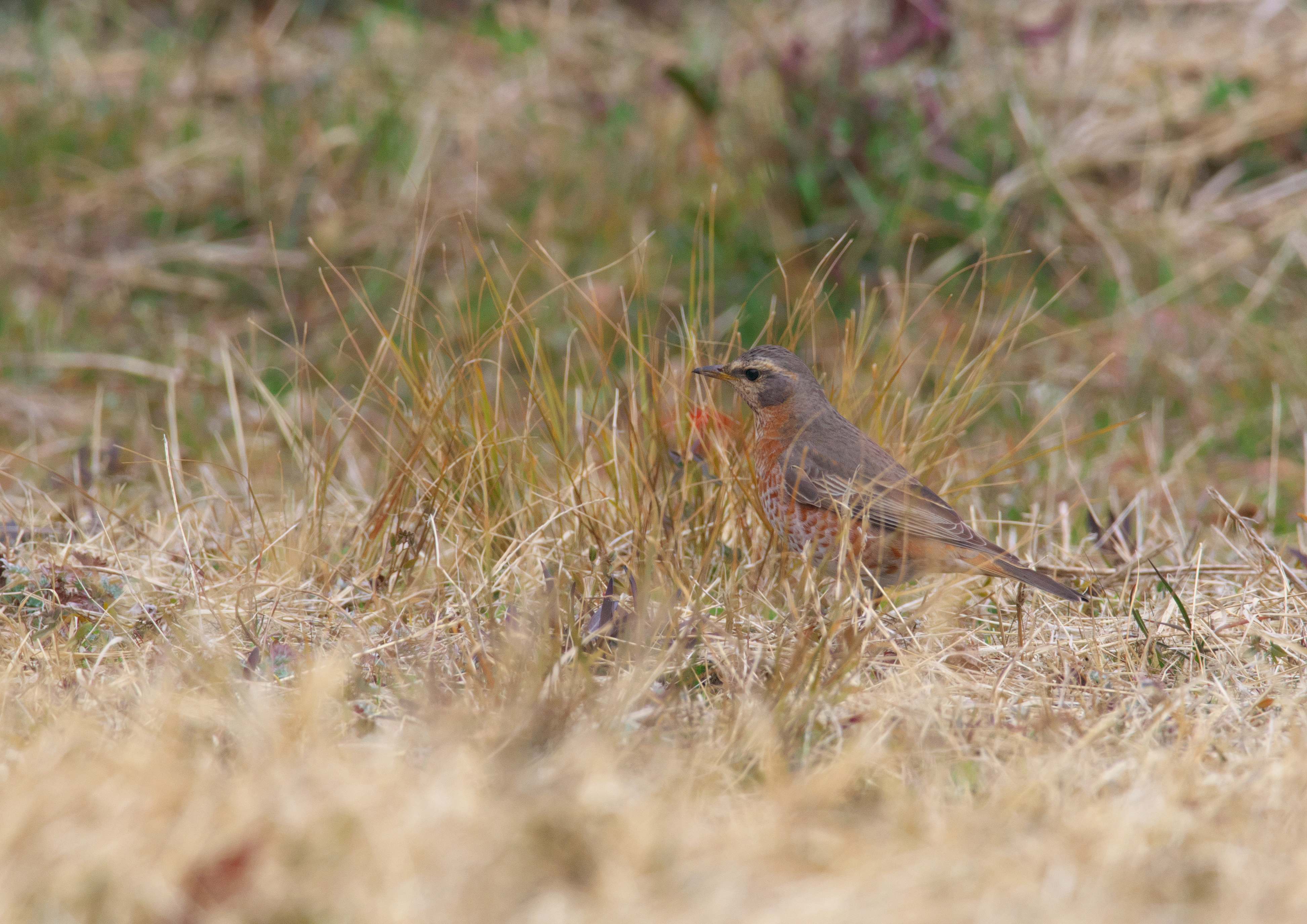 ホオアカを充分に撮ったので、次の目的どりハチジョウツグミを探しに。。。