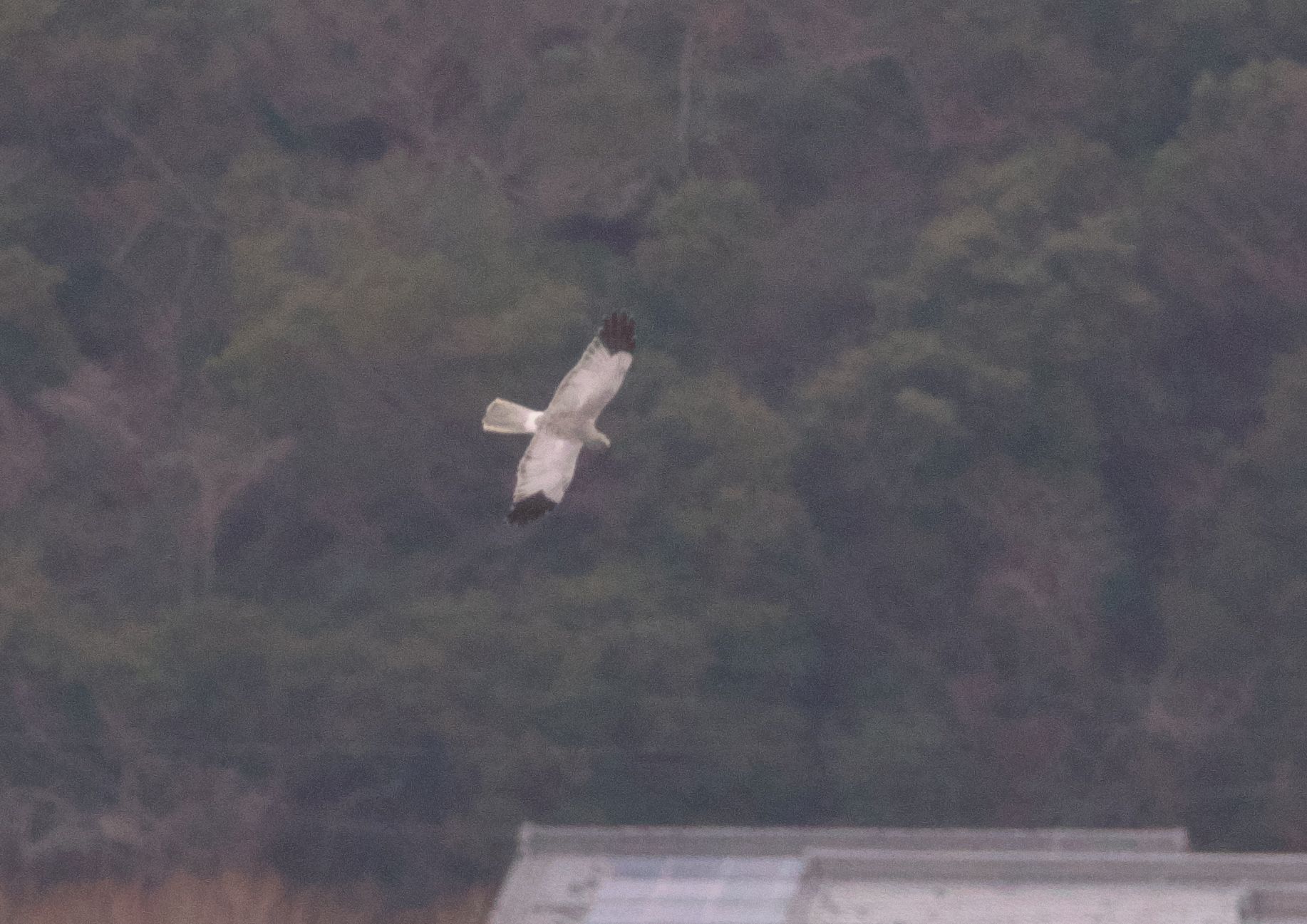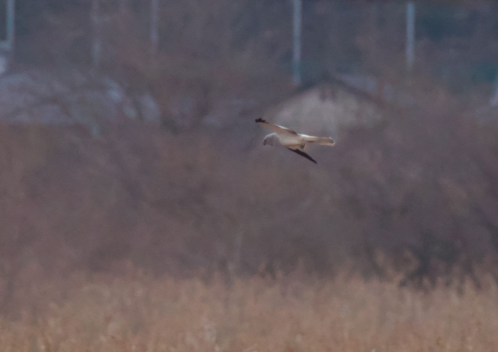 猛禽ランドのいつものポイントに向かっている途中、目の前をハイチュウ♀が通過。15時40分。早いって、でも塒に向かわずUターンしていきました。