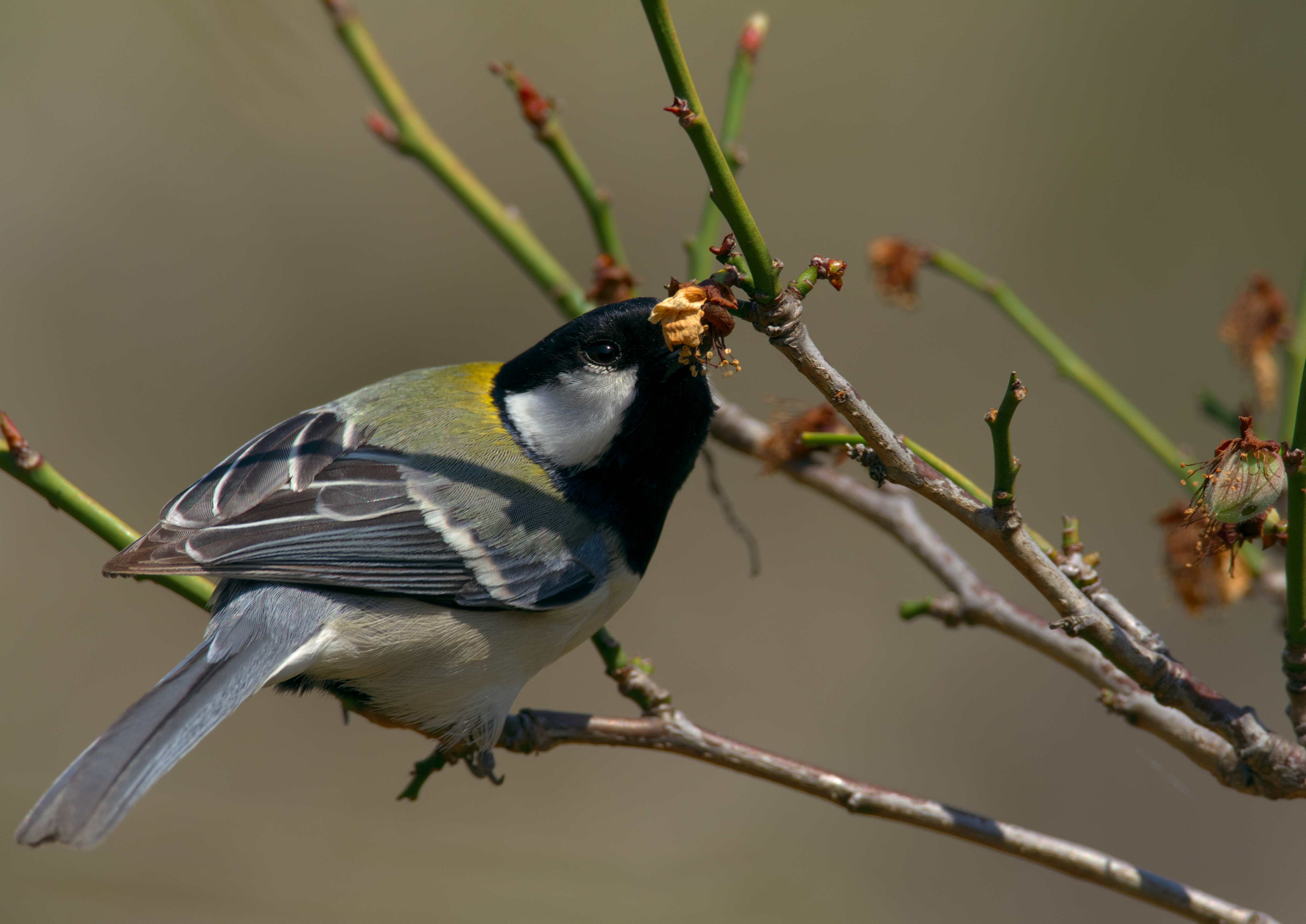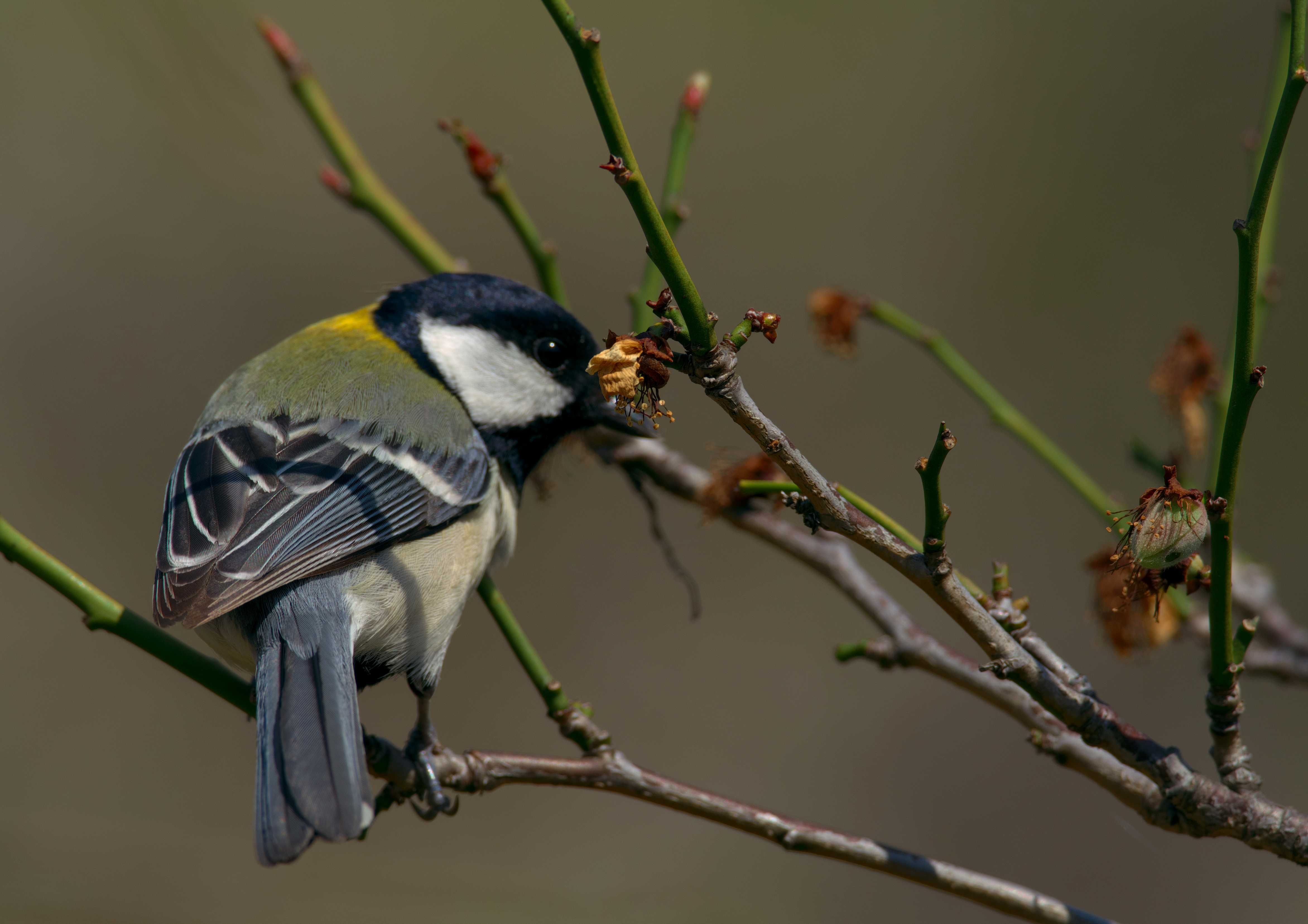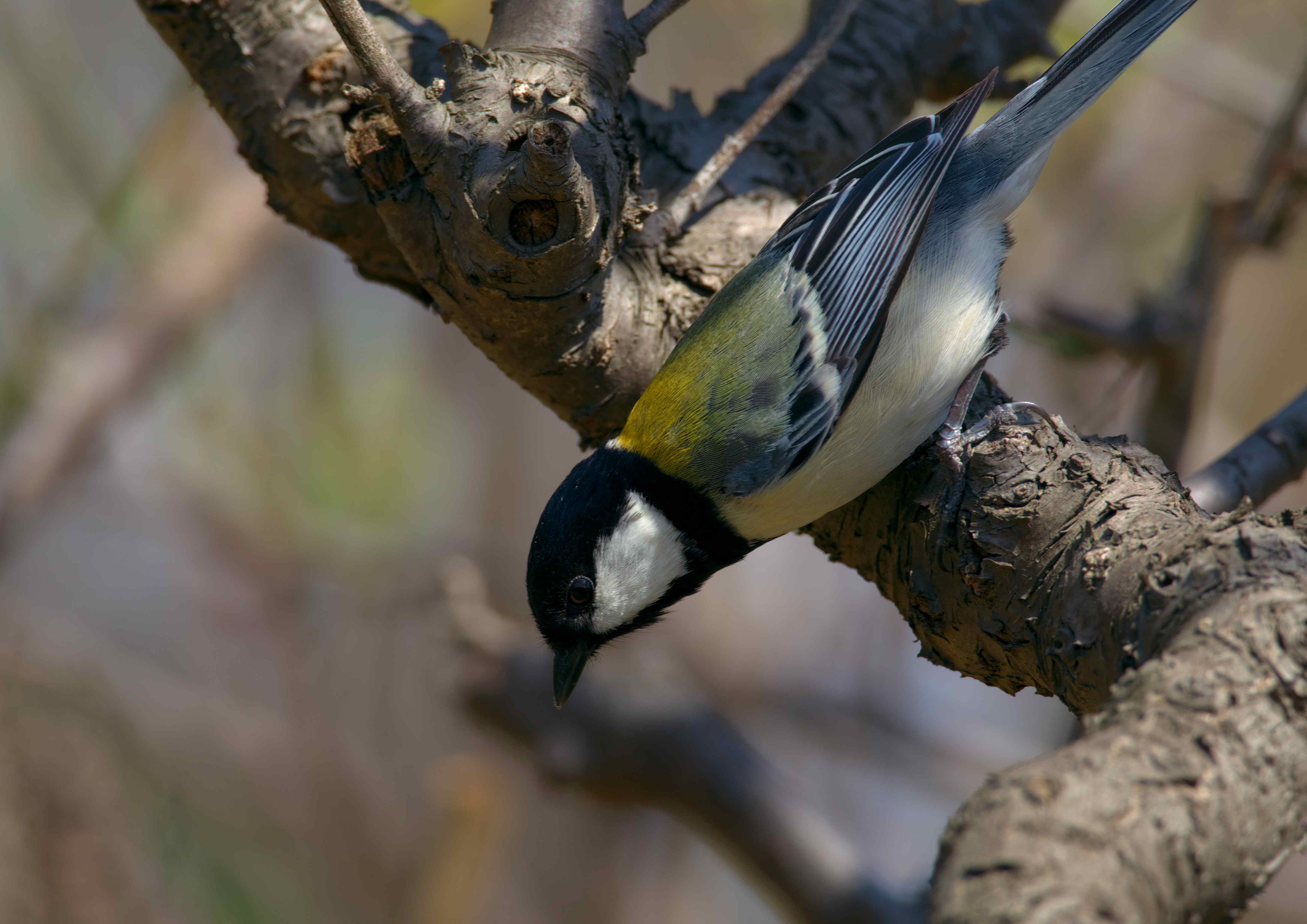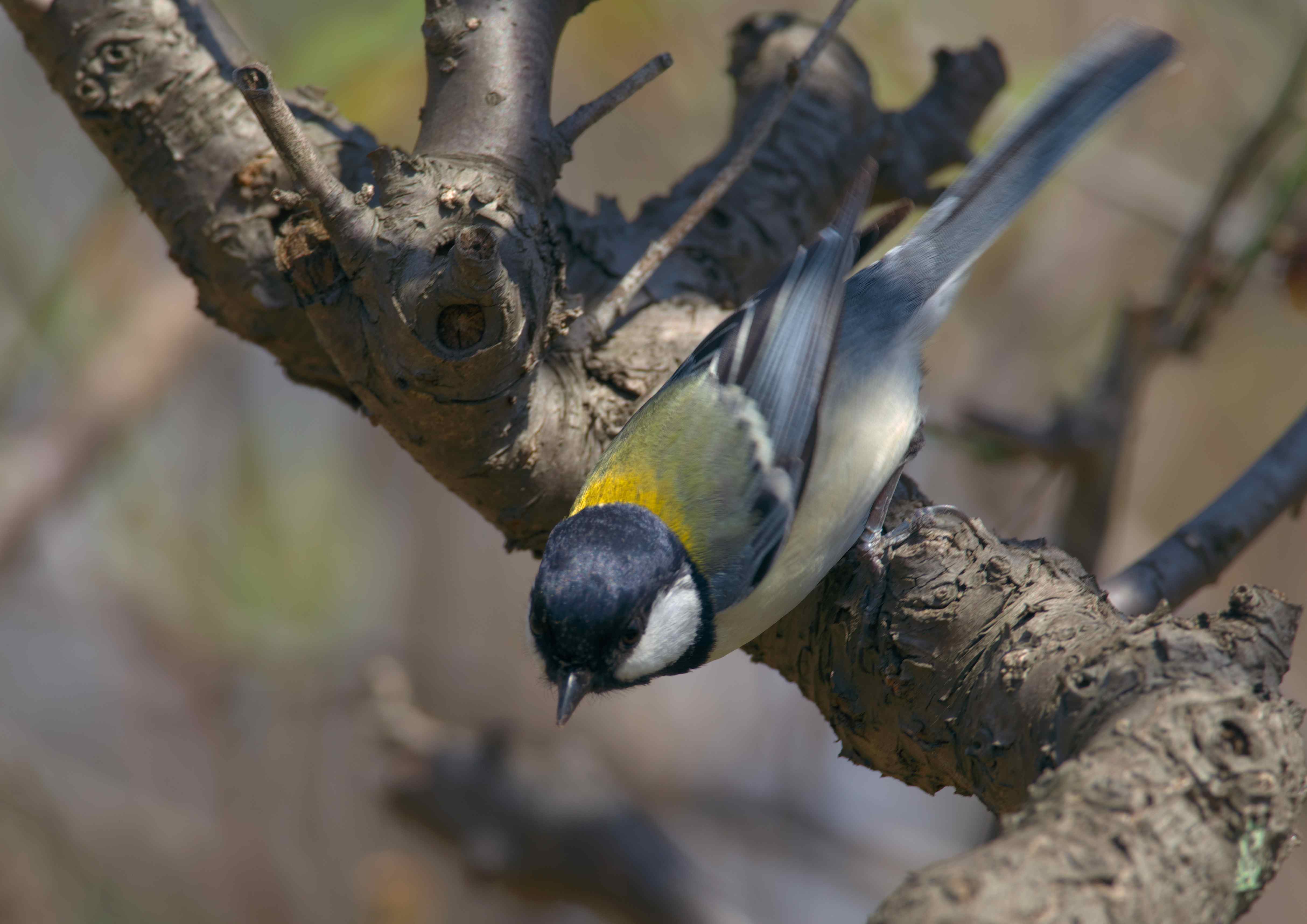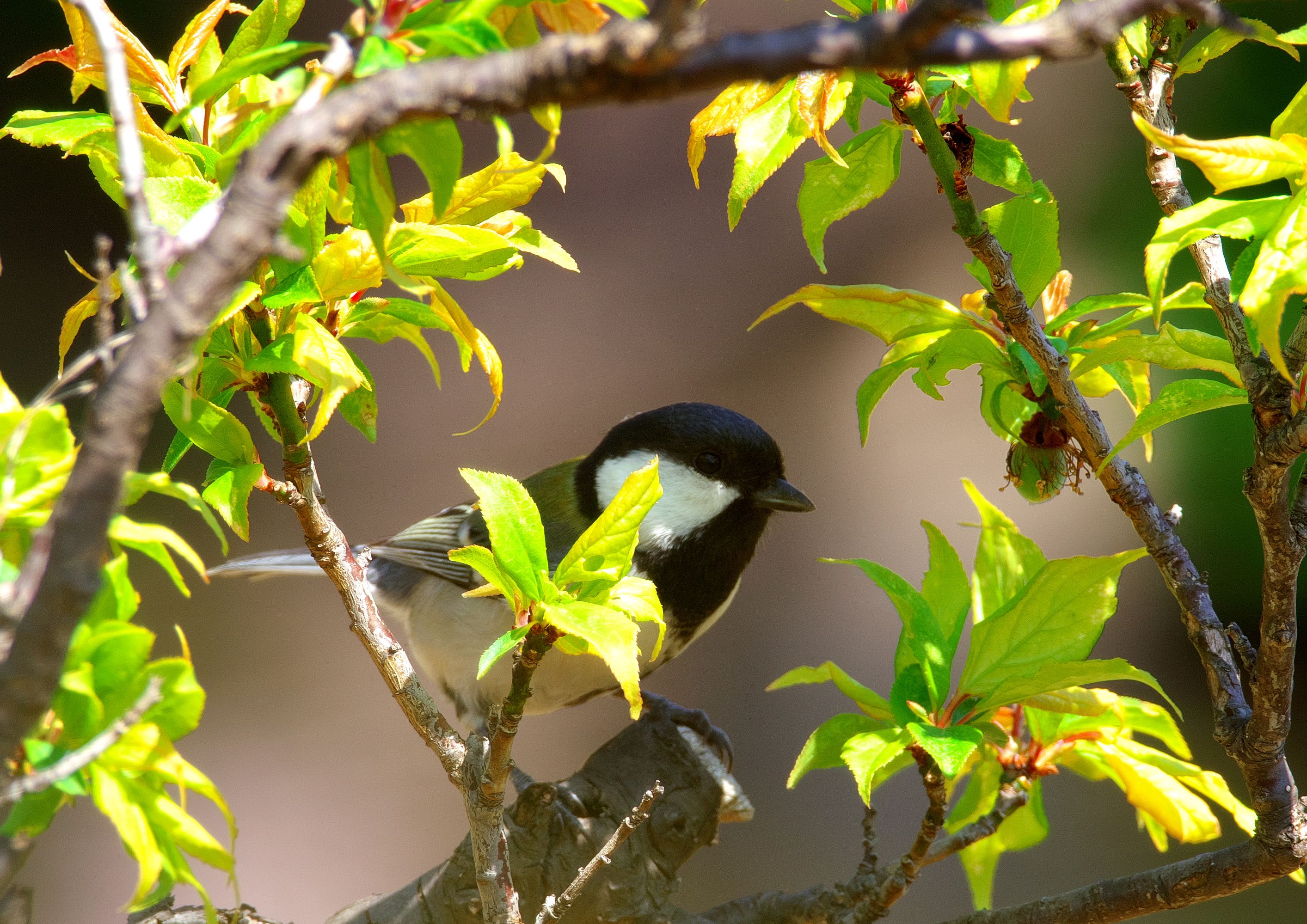 シジュウカラ。桜では撮れず。花の散った梅で。