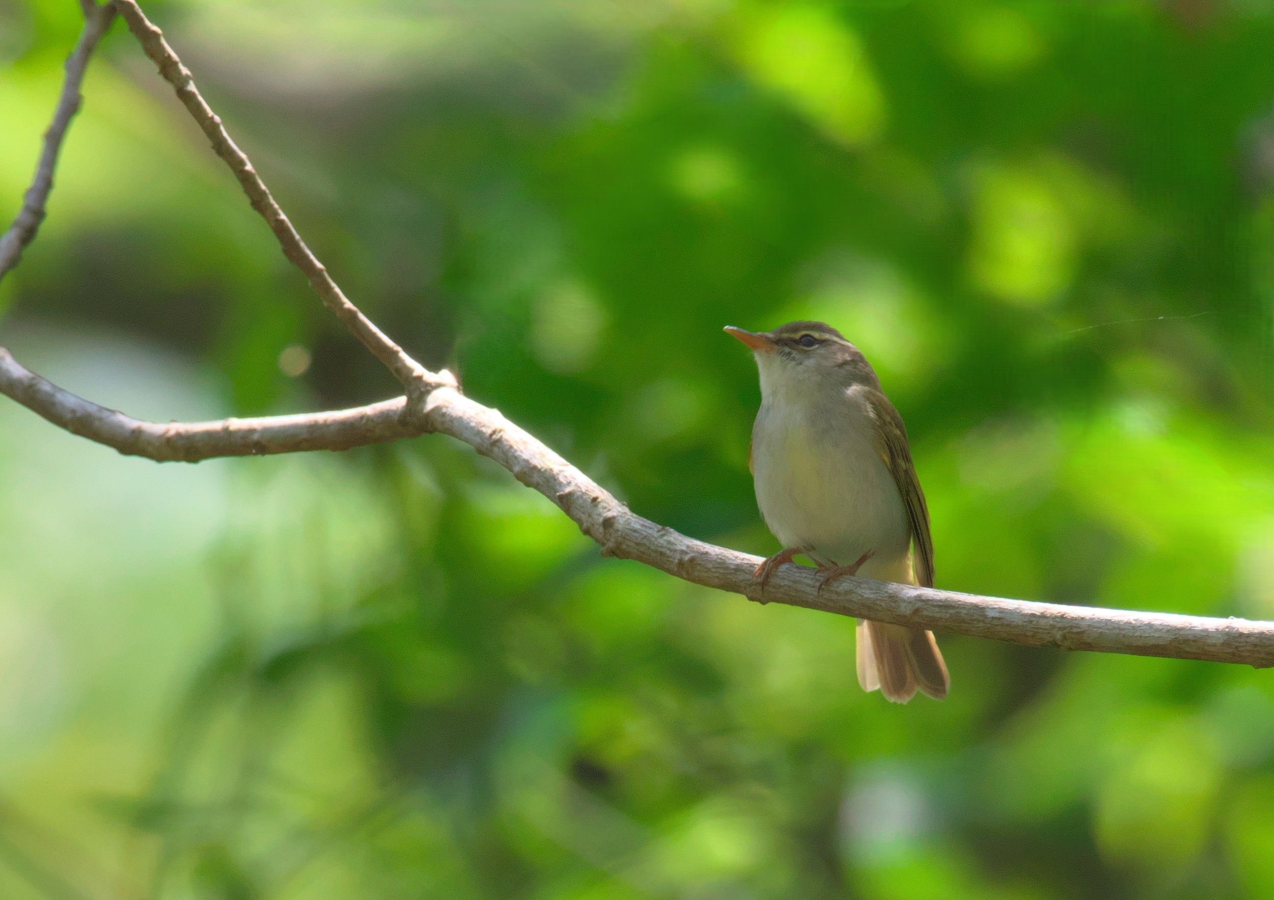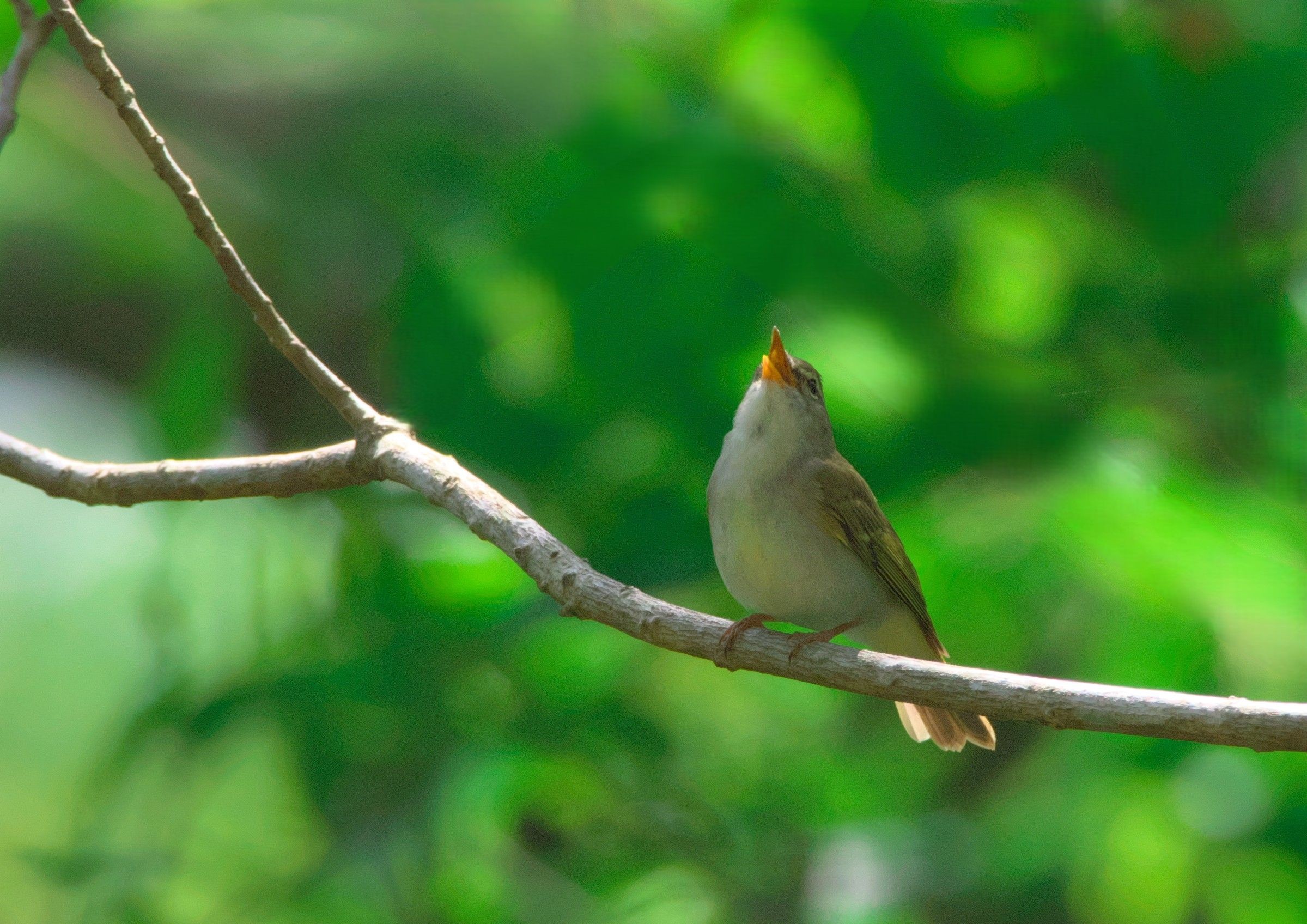 諦めて山を登り始めるのですが。。。聞こえるのはムシクイの声だけだが撮れる距離ではない。