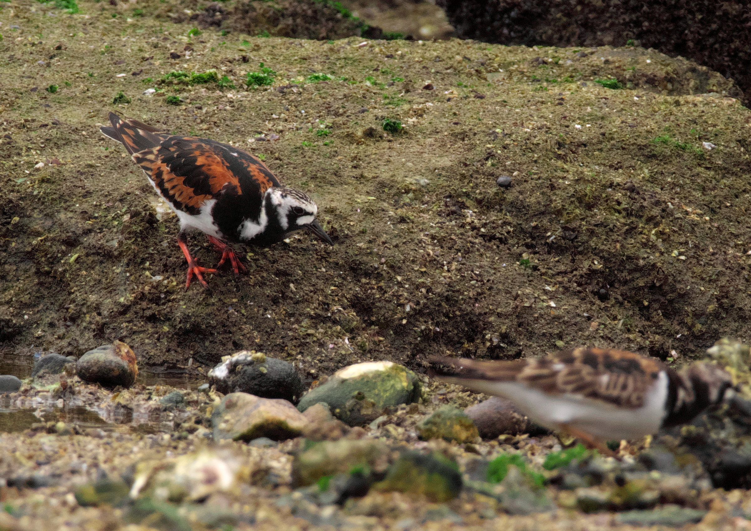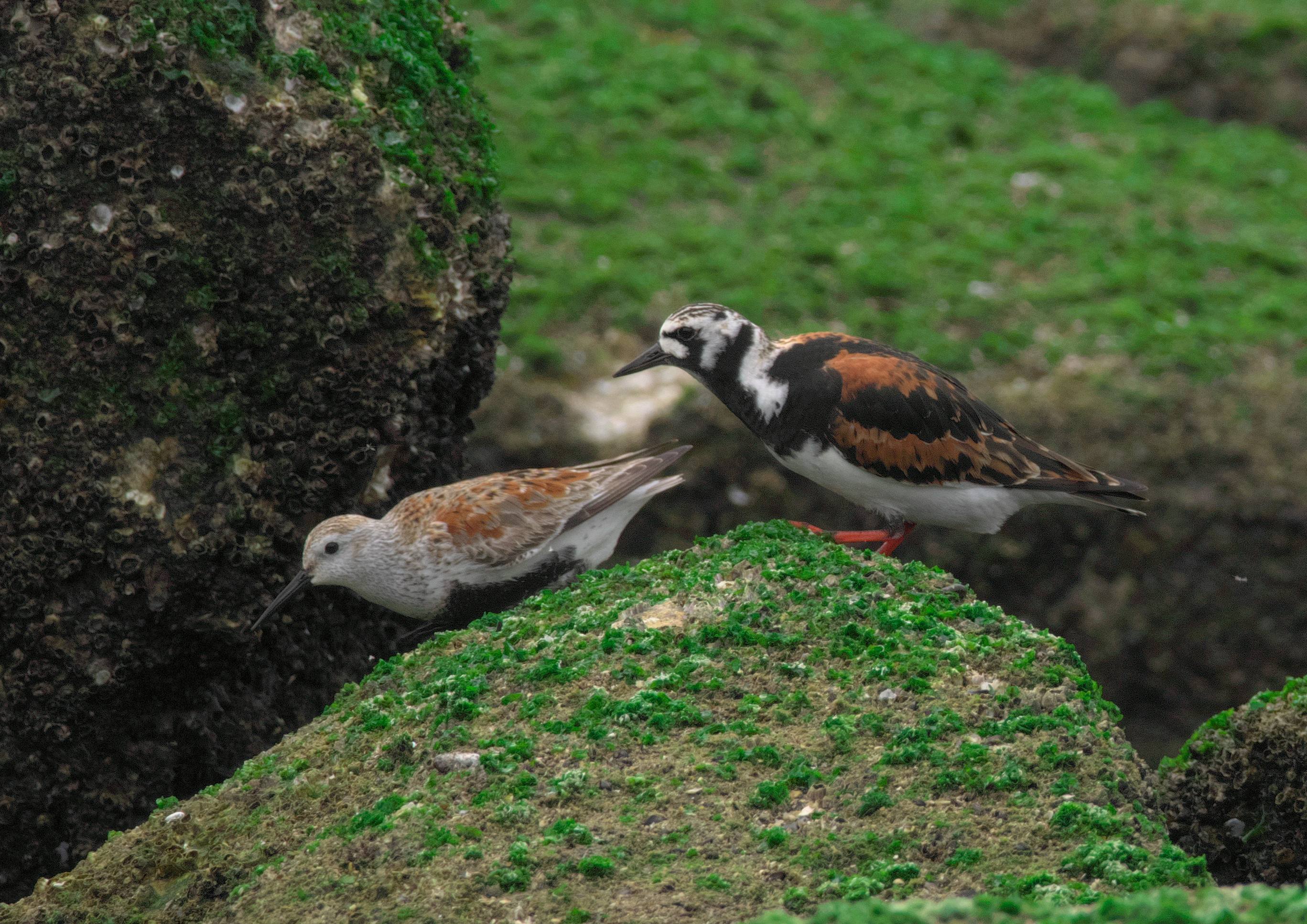 しっかりと見ていると岩場に見え隠れするキョウジョシギが。