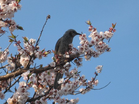 朝トレ中、こんな光景が・・・・・。朝トレだか写真撮ってるのかわからないですよね・・・・(^^;)近所の梅の花の蜜を吸うヒヨドリです。 近所の枝垂れ桜がそろそろ満開になりそうです。 近所の六花亭のツタの葉が少しずつ開いてきました・・・・(^^;)このツタの葉が紅葉して、落葉する頃には・・・(笑)