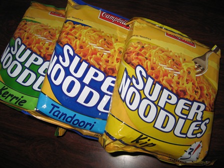 同僚Pくんが、オランダに出張。「お土産は、ジャガイモとチーズとインスタントラーメン」とメールで頼んだのですが、日本に輸入できないジャガイモはさすがに買ってきませんでした(笑)茹でて持ってこいって言ったのですが・・・(爆) インスタントラーメンを買ってきてくれました。SUPER NOODLESって書かれてあります。英語です・・・スーパー麺類(笑)下側に書かれてある「Kip」「Tandoori」「Kerrie」って味のようです。オランダ語?調べてみると、チキン、タンドーリ、カレーのようです。日本のテイストとは違うんだろうなぁ・・・・楽しみです(^^)