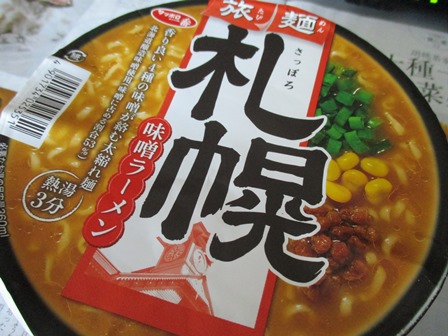 きょうは旅麺シリーズの札幌味噌ラーメン! この側面片側だけに、サッポロ、札幌、さっぽろ・・・と3種類書かれてある(笑)改めて感じますが、日本語って難しいですよね・・・。 もやしは入っていませんが・・・なんとなく札幌ラーメンの雰囲気はあります(笑)縮麺で、コーンがあるからかな・・・。 味は・・・塩っぽいみそ味。インスタントらしさがいっぱいの札幌ラーメンでした(笑)