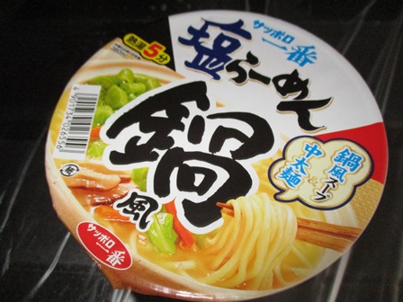 自宅の天井とドアの塗装工事のため、キッチンが使えず・・・。貴重な平日の昼食用カップ麺を食べることに・・・(--) サッポロ一番 塩らーめん 鍋風・・・と思っていたのですが・・・サッポロ一番 鍋風塩らーめん なのでしょうか(笑) 画像では分かりにくいですが、ネギの再現に感動します(笑)スープはそんなに濃くなくて、あっさりした味でおいしいです!