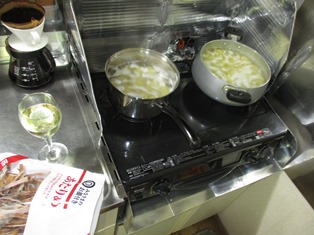 GW明け・・・ハマでの打ち合わせ。 身体が重い・・・というよりは気持ちの問題・・・(苦笑) ランチはここで・・・ 2度ほど飲みに行ったことのあるイタリアンの店。 おしゃれな感じの店です。 週替でワンコインランチメニューがあるので、楽しみにしてました!今週は、スパイシーシーフードカレー・・・ですが、メンチカツも同居(笑)500円でおいしくいただきました。 ネタないなあ・・・。デトックスのために白ワインを・・・(笑) 連休明けで生活のリズムが戻らない・・・朝、冷凍保存していた肉とご飯の解凍を忘れ、夕食はパスタに・・・。タマネギ、シイタケ、サバの味噌煮の缶詰に、ニンニク、オレガノ、バジルを加えたパスタ。なかなかイケます! さて、家事でもするかな(汗)
