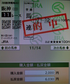 ご利益があるのでしょうかね?帰宅後、中央競馬東西のメインレース、最終レース、計4レースを買ってみたのですが・・・。 東京メインのエプソムカップはハズレましたが・・・ マーメイドSは、馬連14点買いで的中! 阪神最終12レースは、3連単45点買いで的中!なんとかプラス(汗) 東京最終12レースは、3連単40点買いで万馬券的中! 調子に乗らず、ゆっくり買える時だけ買うことにしないとね(笑)