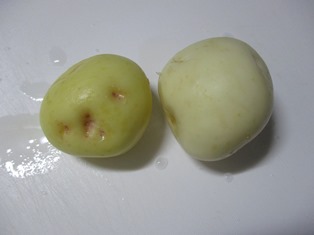 梅雨空の一日でした・・・。昼休み、散歩に出かけても・・・特段何もなく・・・(--) きょうは、ジャガイモ4品種を入手! 新じゃがなので、洗うだけでこんなにキレイに皮がむけるんです(^^)かわいいっすね~ きょうは残りのゴルゴンゾーラで3品を作ってみました!ゴルゴンゾーラのじゃがいもピザ、ゴルゴンゾーラのなんちゃってパパ・ア・ラ・ワンカイーナ、ゴルゴンゾーラとニンニクトマトソースのパスタ・・・。どれもみんな、うめぇ~(^^)v ゴルゴンゾーラ、ばんざ~い! 今度はいつ割引で販売されるかな(苦笑)