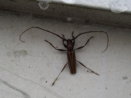 喉が痛くて、朝の4時に目が覚め・・・うがいをしてから二度寝・・・ 久しぶりに記憶に残った夢。 話は以下のとおり。ハマに出張に行くと・・・現在、産休の同僚AKさんが出勤してて、大きなダンボール箱いっぱいにお土産を買ってきてたのです。そのお土産というのが、直径30cmくらいの海老せんべいで、何百枚もある・・・。なんでこんなに大量に買ってきたのと訊いて、つくばに戻らなきゃってところで目が覚め・・・(汗)いつもより45分の寝坊です(--)つかれてるんだなあ・・・。 シャワーを浴びて、食事して、バタバタと家を出て・・・、守谷駅で携帯電話を忘れたことに気が付き・・・(汗) ハマにいたころは、時間的には余裕をもって家を出てたので、携帯電話を忘れて金沢文庫駅から自宅に戻ったこともありましたが・・・ 守谷駅だとそうはいかない。 京浜急行並みの電車の本数ではないし、出勤するには電車を降りてからバスに乗車しなければならないってのが理由としては大きいよなあ・・・(--) 携帯電話のない一日・・・意外と不安です(汗) LINEを送ってきた友人が、いつになっても既読にならないから、「死んでる」と思ってたらしく・・・(--) ご心配おかけしてすみませんでした(汗) オイラはそんなに簡単に死にません(苦笑)今はアデノウイルスに罹った「健康な時よりも食欲がある病人」ですから(爆) 梅雨らしい一日でした。アオスジカミキリも雨宿り・・・。ゲットしました(笑) 昼休みには雨が上がって・・・勤務先の周辺を散策・・・ 梅雨ですね~。雨上がりのアジサイ・・・綺麗です。 そして、きょうもチンゲン菜料理。一人暮らしだと、同じ野菜が続いちゃうんですよね・・・(苦笑)明日は金曜なので、外で快気祝いかな(爆)まだ喉が痛いですが・・・(--)