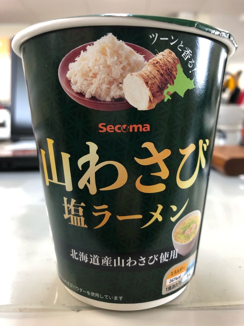山わさびは大好きなので、衝動買い。 やるね、セコマ。 粉末を入れて…よくかき混ぜてと… 赤い字で書いてあります。 山わさびというよりは、キャベツがすごい(笑) 山わさびは粉末で入っているのです。 食べてみました。 ん? 辛さは大したことないな… ズズズ…さらに食べてみる。 あ、なんか少し辛いな。 スープを飲んでみる。 ぶほっ。 むせてしましまいました。 大丈夫ですか? と、部下。 大丈夫じゃない…( ̄◇ ̄;) 粉末は均等になるように、よーく混ぜないと、大変なことになることが判りました(苦笑) やるな、セコマ。