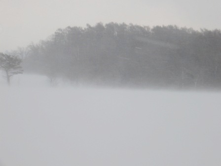 スキーやカンジキ通勤時に天気が荒れたのは初めてのことだ。