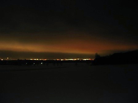街の灯りが雲に反射して、幻想的な光景を見せてくれた。