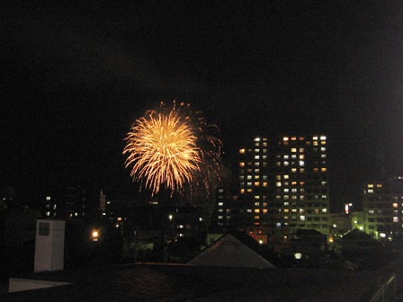街の真ん中で上がる花火・・・・あのマンションの住人にはどのように見えるのだろうか、ちょっと興味があるな・・・・・。