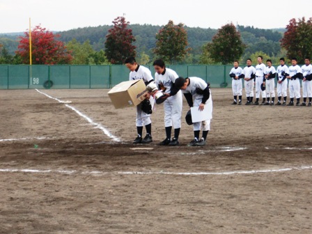 チームを代表し、主将のN君、副主将のSくんと息子が表彰状と記念品をいただきました。