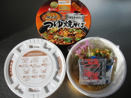 やきそばソース、そばつゆ、かやくが2種類(先入れ用と後入れ用)が入ってる。