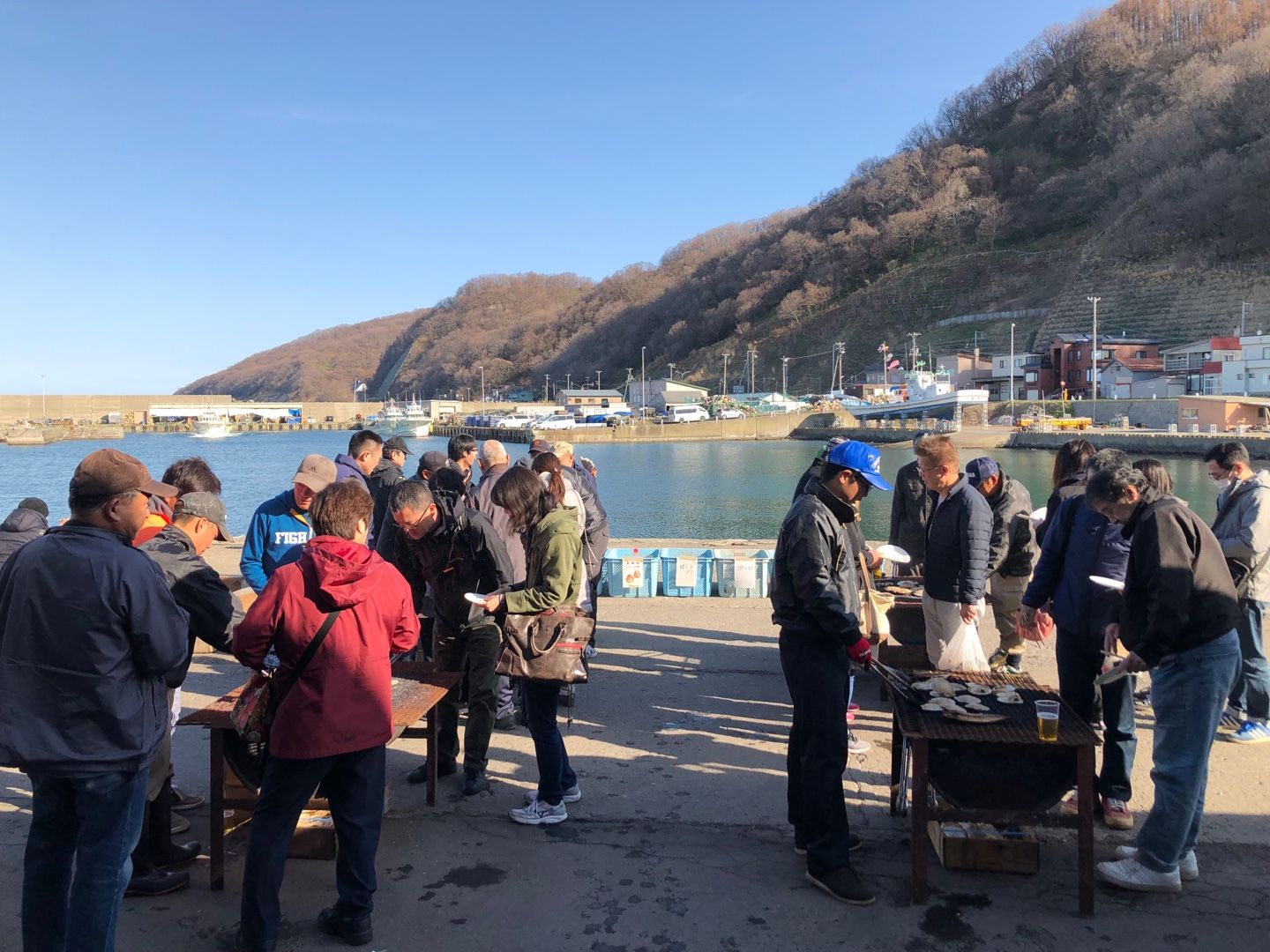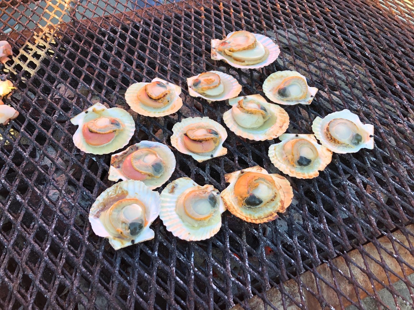 購入した新鮮な魚介類を炭火で焼いてくれるのです。