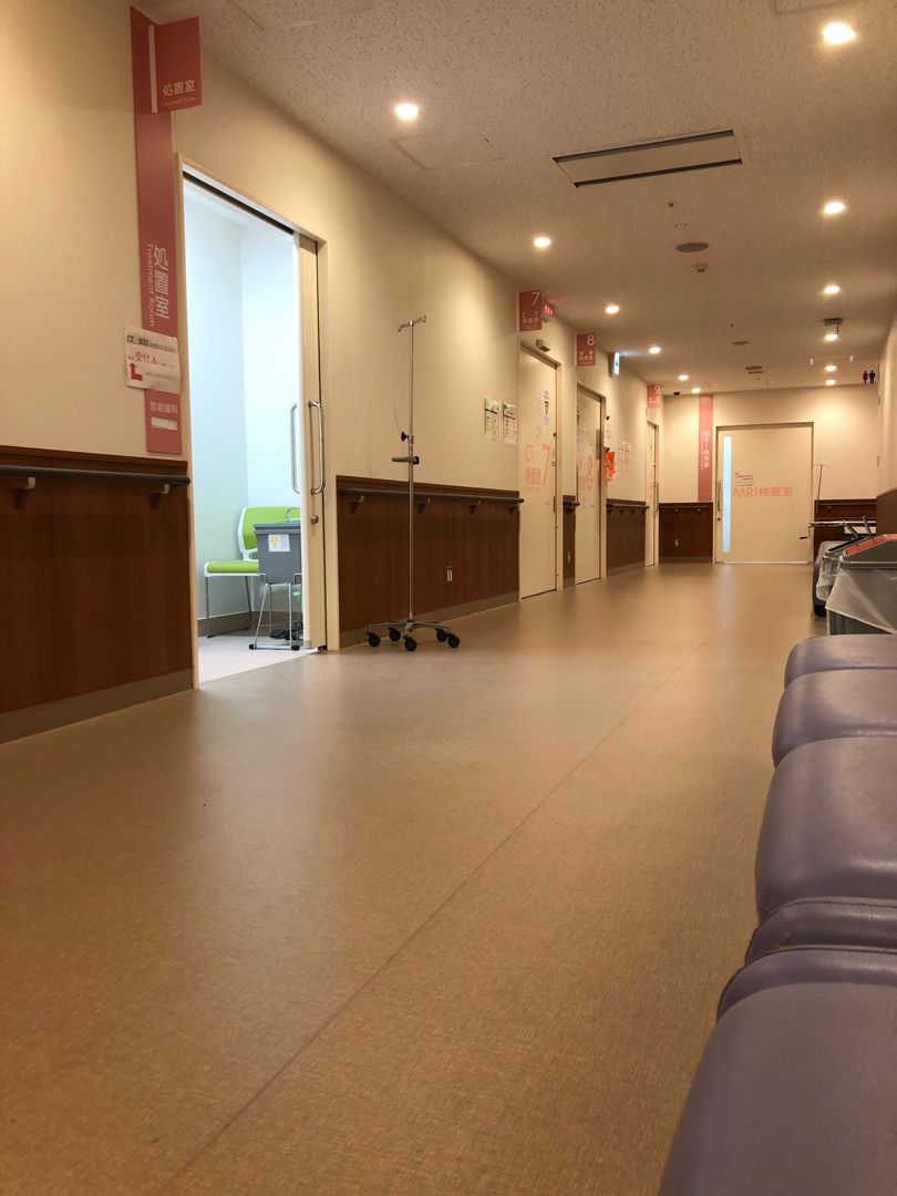 病院周辺の飲食店は、ランチタイムが15時までで、夕方まで閉店。