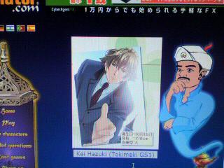 こんちは!今日は通院があったのでお休みです。なので、こんな時間に更新してます。内容的にはどーでもいい内容ですが。。。(言っちゃった・・・)もぉかれこれ1ヶ月くらい前に、ダンナに教えてもらってた海外サイトがあって。全部英語表示なんですが、何問かの質問に「はい」「多分そうです」「多分違います」「いいえ」(←全部英語)のボタンをクリックしていくと、自分の思い描いている人物(リアルでも二次元でも)をズバリ言い当てる、という・・・ま、そういうサイトなんですが。思いっ切り忘れてたんですが、さっきメルボを整理してたら見つかったんで、時間もあるし、とやってみました。モチロン!!思い描いたのは、マイ・フェイバレット・スイート・ラヴァー(大笑)。愛しの哲ちゃんです♪♪♪じゃあ!!と意気込んで質問に答えるワタクシ。そして・・・ついにランプの精のおっさん。やけにしたり顔で、「コイツだろ?」と指してきたのは。。。・・・・・・・・・・・・・なんで、けいぽん、やねんっ?!?!?!(笑)思いがけない王子の登場に、飲んでたコーヒー吹き掛けました。。。!!やややっ!!違うよねっ?!私、おっさんの「筋肉質ですか?」に、「はい」って答えたよね?!「美貌を売りにしてますか?」に「いいえ」って!!<ちょっと哀しい。。。ほんで・・・ほんで・・・っ!!!「ほもせくしゃるですか?」にちゃんと「はい」って!!!(大笑)(だってぇ。。。そういうゲームだしぃ。。。φ(._.;))そこから、まさに地獄。全然当たらね―――ッ!!!流石に20回以上となると、「・・・ひょっとして、おっさんのキャラクターのキャパの中に哲ちゃん居ないんじゃあ。。。;;;」などと勘繰り始める始末。<ひがみ根性。念の為に哲ちゃんの名前検索したらちゃんとあったので、やっぱり当てられないだけなんだ~どーだ!おっさんめ!!ザマーミロ!!!・・・と内心嘲笑うワタクシ(黒)んで、約1時間後。<いつまでやってる?やっとおっさん、哲ちゃんを言い当てましたとも!!多分決めては「背が高い」「ほもせくしゃる(こら!)」「組織のリーダー」だと思う。。。どっちにしても。何でこの画像なんだろう。。。ゲームの中でもイラスト集の中でも、もっとカッコいいの、沢山あるのに!!ま、キャラがあっただけいいか!!(叫!)↓↓↓<証拠画像>↓↓↓そして、「そーですよ」と「Yes」をクリックしてあげたら。ランプのおっさん、大喜び!!(大笑)泣くほど喜ぶなよ。。。んと。ちなみに。「哲ちゃん、やっと当たったから、じゃあヒデもついでに」とやってみたら。アッサリ1回で当てやがりました。。。ガッテムッ!!!凸(▼皿▼〆)絶対に「背が高い」「ほもせくしゃる(その通りだ!笑)」「メガネをかけている」で来たなコイツ、と思ってます。・・・・・・・・・・・・・・・・・・・この画像もどーか、と思うけどな。。。ま、いっか、ヒデアキだし(ヒドい;;;)ま、かわいいお遊びなんで、まだやったことのない方でご興味あったら、是非ともどーぞ☆ちなみに確か、ですが、ヘヴンのキャラなら和希さんと臣と啓太の名前はあったハズ。GSだと、他に鈴鹿と姫条の名前は見つけました☆つか・・・何度目かの「この中に貴女の探すキャラ名がありますか?」ってリスト表示で、ヒデの名前のスグ下に姫条の名前があったときは、流石にまどかが気の毒でした。。。まどかはほもじゃないのに。。。鬼畜でもないのに。。。ううう;;;>>>『Akinator.com』