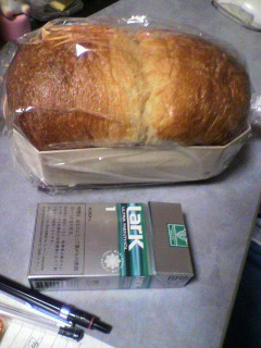 レシートで確認したら、 「プレミアム蜂蜜パン・ド・ミー」なるものが、1つ1575円 もするって事が判明しましたっ!!!ソイツが、最初の写真のパン。比較対照のタバコと見比べてください。然程大きくもねぇし。