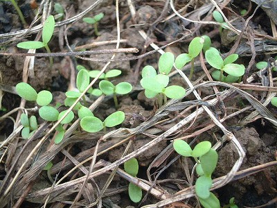 以前の日記に書いた、あの遅ればせに播いた春菊、ほうれんそう、高菜、ルッコラの種。。。芽が出ました~!! ほうれんそう♪ 春菊♪ 高菜♪ ルッコラ♪4日ぐらい前、「あれ?これはもしや・・・?」という感じだったんですが、きのう、きょうの暖かさのおかげか、一氣に芽吹いてくれました~こんなにたくさん よく出てきてくれたね~、ほんとうにありがとう畑に行くたんび、「播いたの遅かったし 急に寒くなると困るだろうから、ムリしなくていいからね」って声かけてたんだけど、こうやってぞっくりと顔を覗かせた芽を眺めていると、「いいよいいよ 大丈夫、これでいいんだよ~」ってあったか~く応えてくれて にっこり笑いかけてもらったみたいで、なんかもう、ただただ「ありがとう~」っていう感じで。。。やっぱり種まきしてよかったぁ!!よく来てくれたね、ほんとにほんとに ありがとうね~あとは どうか無事に冬越ししてくれますように。。。
