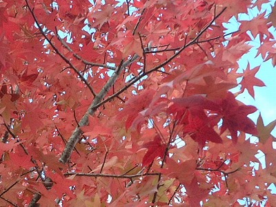 この辺ではめったに見られない 鮮やかな真紅。。。近所の小学校の校庭で見つけたカエデです 先週が 学校開放週間に当たっていたので 見学に行ってきました♪全校生徒51名のこじんまりした小学校 大阪で 1クラス45~46名という超過密な小学生時代を過した私には、この人数の少なさがうらやましくて人数が少ない分、先生の目も行き届くし とっても家庭的な雰囲氣だしいろいろな授業を見せてもらいました♪「ALT」という、アメリカ人の先生がよそから来られて英語を交えながら アメリカの暮らしや風習などを紹介してくれる授業は、今回は 季節がら ハロウィーンのお話♪1・2年生と5・6年生で 同じ授業を続けて見せてもらったんだけど、1・2年生のみんなの英語の発音が5・6年のお兄ちゃん、お姉ちゃんに負けないぐらいしっかりしてるのに驚きましたイスを円形に置いて、とっても自由な雰囲氣♪みんな生き生きと楽しそうにお話してて、45分があっという間でしたあれは。。。たしか4年生だったかな?図画の授業前の時間に 校庭でスケッチした木々の絵に 絵の具で色づけ♪めいめい 拾ってきたカエデの葉っぱを机に置いてそれを見ながら色を塗っています♪そんな中、パレットの上で 一心に 時間をかけて絵の具を混ぜ合わせて色を作っていた女の子の姿が今でも印象に残っています茶色やグレーが少し混ざったサーモンピンク、とでもいうようなとてもシックな大人っぽい色「パレットに色塗ってるだけじゃダメだぞぅ」と先生の声。。。そうですよね、それぞれがマイペースだから 先生も大変(^^)でも 私、お嬢ちゃんが じっくりと色作りを楽しんでいる様子が見ててとっても心地よかったんです~自分が これ!って思う色をイメージしながらなんとかそれに近づけるように ひたむきに色を合わせていく姿完成まで時間がかかりそうだけど、まあ それもありだよね、って。。。あのピンク、今でも目の中に残っています♪「ちゃんと描けよ」って苦笑しながらも 氣長に見守っておられるような先生の様子も家族みたいなあったか味があって ほのぼのしましたそれと、床にじかに画板を置いて ぺったり座り込んで描いてる子たちもいて、それでもOKっていうのがよかった~人数少なくて、教室が広く使えるからっていうのもあるんだけど子供らしくて ムリがなくて 自由な感じがして別の教室では、あ、お習字だ~・・・って あれれ?こっちの子たちはリース作ってるよ???ここは2年生と3年生の複式学級でした(^^)2年生さんたちは、もう少し時間かけてリース完成させたいからって何名か残って作業してたんですって♪さすがにこだわるだけあって とってもカラフルでおしゃれなリース毛糸を貼って、ビーズをつけて、リボンを巻いて、可愛く可愛く。。。ときどき友達どうしおしゃべりしたりしながら 悠揚迫らず 納得いくところまで作りこむ様子が とってもステキでしたこのリースの土台に使われていたツルは、サツマイモのツルなんですって。春に苗を植えて育ったサツマイモを、少し前に芋掘りをして、焼き芋にして、そのときに採れたツルを使ったんだそうです。この学校は、こういう 芋掘りとか、リース作りとか、算数や国語みたいな学科以外の授業が多いように見えました♪校内には これも授業で作ったらしい色とりどりのキャンドルや石に色を塗ったり絵を描いたりしたものやダンボールのデコボコを利用して 山で拾った木の実や枝などを貼り付けたかわいい額などがいっぱい飾ってあって、私自身 こういうモノ作りが大好きだから もうワクワク見学のときの授業にも、近所のおばあちゃんたちを招いて昔の遊びを教えてもらう、なんていうのがあったりして父兄の方から聞いたところでは山歩きなどの校外学習も多いんですって♪いいなぁ、ステキだなぁ、うらやましいなぁ♪ず~っと学校ギライだった私だけど、こんな授業なら、こんな学校なら、もう一度子供に戻って通いたいぐらいだわ~この辺りは 過疎化が進んでいて 子供の人数も徐々に減っているんだそうで、この春も 4つあった小学校のうち 3校までが1つに統合されたりしてこれはなんとかしなければ、という雰囲氣なんですが、今回見学させていただいた感想としては、先生の数に対しての 子供の数が少ないのは決して悪いことばかりじゃないなって思いました。ここでは 非行だの 自殺だの そんなのありえないっていう感じ確かに 運動会とか あまり人数が少ないとやりにくいものもあるけど、その辺は 先生や父兄や近所の大人たちの情熱でカバーしているらしい親御さんたちが 自分たちでできることはないかって考えて、朝の15分間に 本の読み聞かせをしたりピアノと朗読のコラボレーションをやったり芋掘りの時は、おいしい焼き芋を焼く機械を持っておられる方が機械持参で駆けつけてくれたんですってこういうのどかな田舎でも時として 怪しげな輩が出没することもあるらしく、下校時には 近所の家やお店の人たちが さりげなく外に出て、