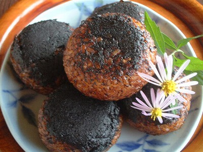 10月のある日のこと。。。なぜか突然「ああ、おいし~いおにぎりが作れるようになりたい~!!」という思いに襲われましたそれ以来、いつもなら 一回の食事に 一人用の土鍋でご飯一合炊くところをステンレス鍋で三合まとめて炊いて、残ったご飯でおにぎりを作るのが習慣になりました♪初めのうちは鮭や梅干、おかかなど入れて のりを巻いたおにぎりでしたが、最近は 焼きおにぎりが マイブームに♪きょうの焼きおにぎり♪ゴマ油で焼いた 味噌焼きおにぎりで~す真っ黒なのは 焦がしたからではありましぇ~ん(^^)こういう色のお味噌なんです~♪仕込んでからかれこれ7~8年・・・いや、ひょっとしたら10年ぐらい経つかも。。。すんごい色の味噌ですが、塩氣がとってもとってもまろやかで 酸味もあって、いいお味なんですよおにぎりにたっぷりまぶしても 辛くなり過ぎなくて、焼くとそれはそれは香ばしくって ゴマ油の風味が またいっそう香ばしさを引き立てて もうたまりませんよ~く擂ったゴマと味噌を合わせて 油なしで焼いてもGOODです(^^)vただ 見た目あまりにも地味なので、きょうの写真は お花さんに助けてもらいましたが。。。(^^ゞおにぎりにはいい思い出がたくさんあります一番なつかしいのは、子供の頃 母が作ってくれたおにぎり♪中でも 日曜日の“ピクニック・ランチ風”昼食のおにぎりは忘れられません♪大皿いっぱいに おにぎりをどっさり盛り上げて、あとは 味噌汁に漬物、常備菜ぐらいのシンプルメニューなんですが、このおにぎりが とにかくおいしくておいしくて、何個でも食べられちゃう♪たいていはのり巻きおにぎりで、中身は食べてみてのお楽しみ♪ときには 半分が味噌おにぎりのことも♪母のは 味噌焼きではなくて、味噌まぶしのおにぎりですが、これがまたおいしくて。。。家族揃って おにぎりをパクパクほおばって 食後 お茶を飲みながら 好きなテレビを見てわいわい言っていたのどかな日曜日の午後を 今でもなつかしく思い出します焼きおにぎりでは、やはり母が作ってくれた おしょうゆ味のバター焼きおにぎり♪おしょうゆとバターのこんがりした香りが部屋いっぱいに漂って。。。寒~い冬の夕方、ご飯が待ちきれないほどお腹を空かせていたとき、これを食べさせてもらった満ち足りた氣分は 忘れられませんもうひとつ 忘れられない焼きおにぎりは、大空遊歩さんの めっちゃおいしい炭焼きおにぎり♪遊歩さんと とあるキャンプ場に行って、カレーの晩ご飯のあと、さんざんおしゃべりして ちょっと小腹が空いてきたかな~っていうときに、残りご飯で 遊歩さんが手際よく 焼きおにぎりを作ってくれました♪手馴れた様子できゅっきゅっと あっという間に握り上がったおにぎりは、大き過ぎず 小さ過ぎず、ほどよい厚みのまん丸おにぎり♪それを 七厘でいったんさっと焼いて、両面におしょうゆを塗ってから もう一度こんがりと焼き上げて、満天の星空の下でいただいたアツアツ焼きおにぎりのおいしかったこと。。。絶品でした以前読んだ 向田邦子さんの「阿修羅のごとく」の中に、4人姉妹が 実家の台所でおにぎりを作るシーンが出てくるんですが、結婚した姉二人のおにぎりの形が 実家の頃と違うと下の二人に指摘されて、「お嫁に行くと 行った先の形になるの」って言うセリフがあって、「へぇ~、そういうものなのかなぁ」と思ったものでした。そういえば 実家の母が作るおにぎりは、 いつもまん丸(タイコ型っていうのかな?)か俵型で、私が作るのもやっぱりおんなじ、丸か俵・・・おにぎりといえば三角でしょう~っていうぐらい定番の三角おにぎりは あこがれのカタチなんですが、慣れないせいか、握り方がヘタなのか、どうもうまく形作れないんですそんな私が忘れられない三角おにぎり。。。ある旅館で働いていたとき、お客さんのリクエストを受けて 先輩の女性が作るのを 横で見てたんですが、まず、その人の手が ほっそりして それはそれはきれいな手で、その手で みるみる三角に結んでいく手つきが また何ともいえず美しくて、すっかり見とれてしまいました♪出来上がったおにぎりは 三角おにぎりのお手本のような見事な形、それをふたつに お漬物をちょっと添えて お皿に乗せたところは写真に撮って残しておきたいぐらい魅力的で 今も目に浮かびますそれにしても。。。なんで おにぎりにこうまでも心惹かれるんでしょう。。。特別凝ったご馳走というわけでもないのに。。。でもなぜか、思い出に残るおにぎりは とってもあったかくて なつかしくて今は せっせと一人で作っては 一人で食べていますが、いつの日か 私のおにぎりを食べてくれた人が、あったかい なつかしい思い出としていつまでも心の片隅に残しておいてくれるような、そんなおいしいおいしいおにぎりが作れるようになりた~いおしまいに、このあたりの名物、「めはりずし」のお話を。。。「すし」という名前になってますが、これは 高菜のお漬物で包んだおにぎりで