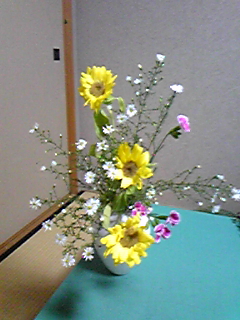 昨日(29日)のお稽古のお花です。 (花材)クジャクソウ・ヒマワリ(新種)・ナデシコ先生宅でお稽古させていただいた 出来上がりはこんな感じ↑ 家で生け直したら ↑こんな感じ・・・後ろにあるグリーンが じゃまでウルサイ・・・お稽古の花器と家にある花器の形が全然違うので もう少しアレンジできればいいんだけどさっ何年やってても よくわからない・・・先生が教室を開かれた時から 8年間いっしょにお稽古してたご近所さんが「色々 一杯いっぱいで・・・」と辞められました。高校1年と中学1年の男の子さんがいらっしゃる 方で・・・最近 息子たちの反抗期に翻弄されてるようでした。遠回しに・・・「子供はそのうち大きくなって出ていったら 何もなくなるよ?自分に投資しなきゃ・・・」・・・そう 話したところだったのになぁ~そういう私も一度 先生に迷惑かけたクチですが・・・辞めるのは簡単だけど 続けることが 難しい・・・せっかく 続けてるんだから 生きてる間はお付き合いしたいです お花 と・・・