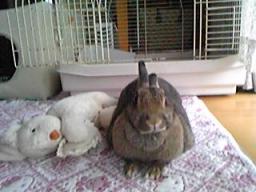 連休のちょうど真ん中・・・今年で9さいになる うさぎの`うさこ`が朝からずーーーーっと横になってる・・・食い意地もはってて 私が寝る前に入れるドライフードも絶対朝には全部なくなってるのにこの日はほとんど 残ってる・・・9年間 うちうさぎ だけど基本は草食動物・・・ちょっとの音でも敏感だから よっぽど気を許した一瞬しか横になって寝ないのに。何となく イヤな予感・・・9さい だしなぁ~動物霊園のパンフレット ドコに行ったかなぁ・・・ちょっと残酷で気が早いかもしれないけど犬や猫より絶対的に弱い動物・・・病院にかかっても って・・・うさぎを診てくれる病院も近くにないし私の叔父が 箕面で動物病院を開業してるけど「うさぎ は無理」・・・と ずいぶん前から断られてた(笑)お昼過ぎても まだゴロゴロしてるし・・・コレはもう アカンかなぁ~と思い娘やダンナに「うさこ 死ぬかもなぁ・・・ 骨拾われヘンらしいから焼いてもらわんとくわ庭に穴掘っとこかなぁ~タオル巻いて 箱に入れて・・・」そんな 話をしてたら急に何度もまぶたが閉じて・・・目に光りがなかったのにまた 目 が横に飛び出してこちらを見てる聞こえたのかなぁ庭に埋められたら かなわん と思ったかどうかは定かじゃないけどえさも食べ出し・・・いつものように 怒られるイタズラを始めた・・・ソファーにも飛び乗って カーテンをかじって いつもの うさこさん に変貌~ あれから3日たつけど 元気なまま・・・あの日 うさこ に何があったのでしょうか・・・でも こんな感じで元気がなくなって行くのかな・・・9さい だもの・・・ね。「覚悟しときなさい!!」・・・うさこ からのメッセージだったのかな
