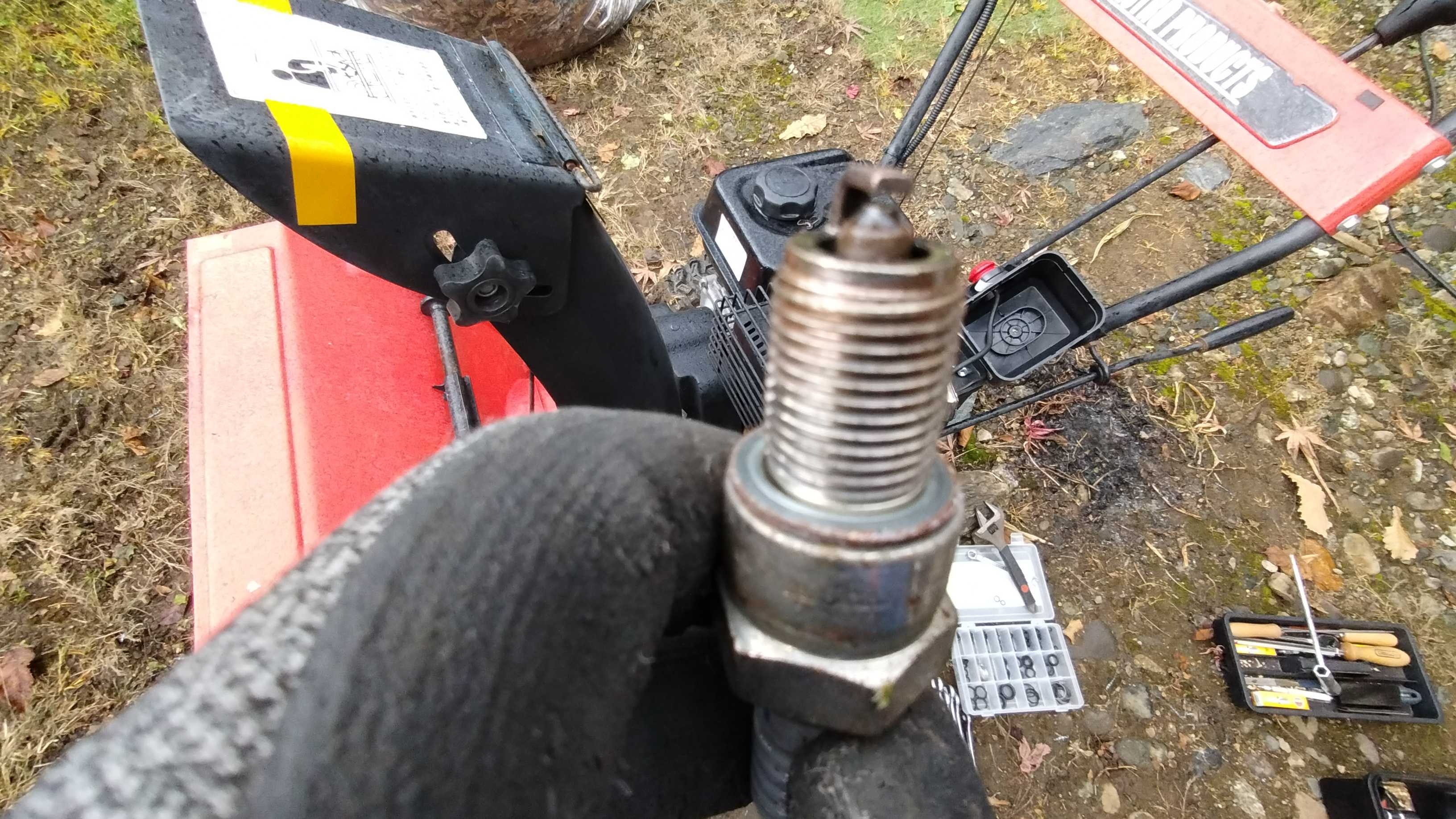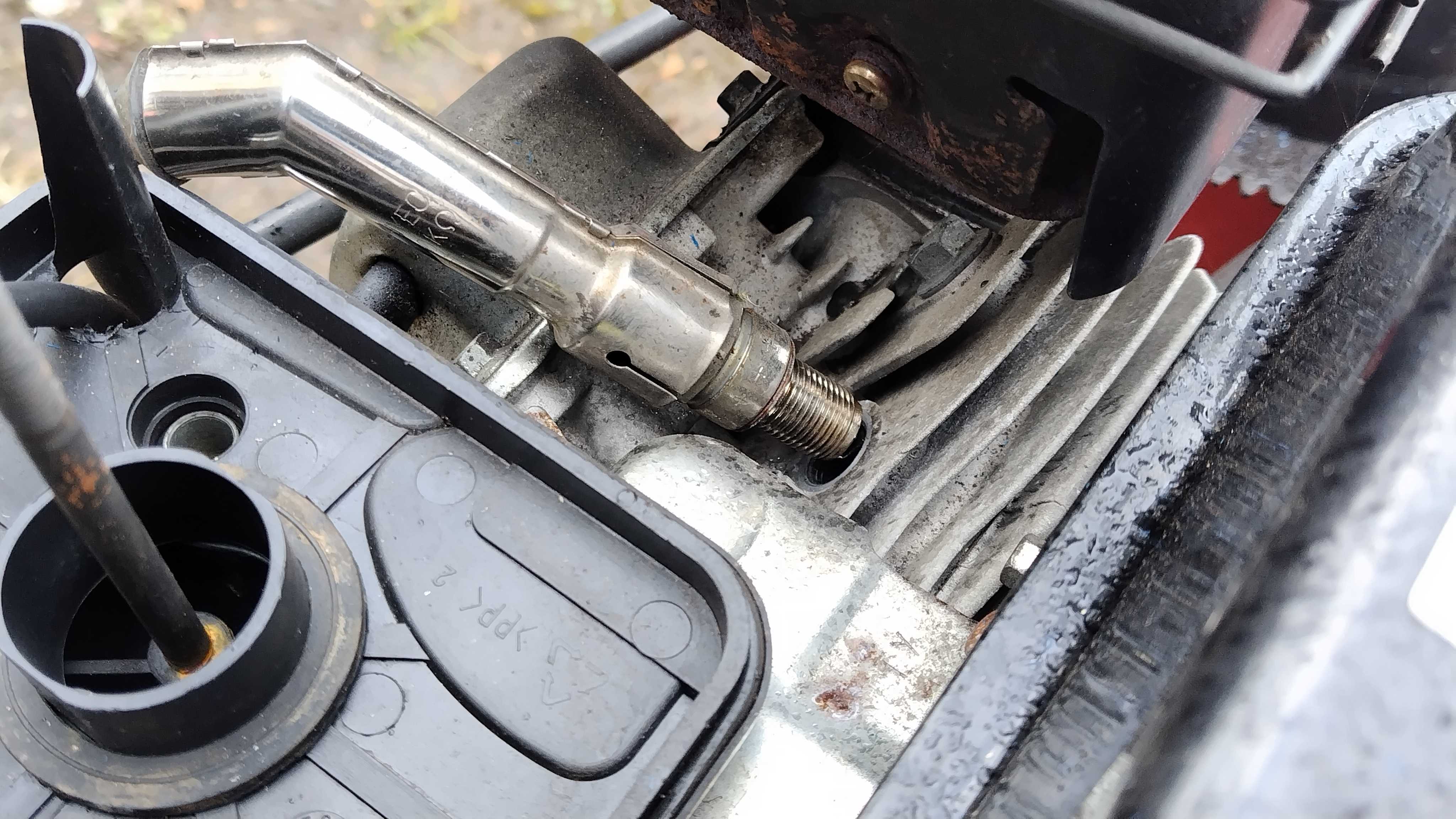 スターターを引いてみて・・・火花が飛んでるのを確認してからプラグを挿して