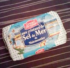 このバター、前回の帰国時に何気なく買って帰ったら「塩のつぶがガリっとしていておいしい!」と妹に大好評だった。で、この前日本の週刊誌を見ていたら、このバターが紹介されてたけどおそろしく高かった。はっきり覚えてないけど4桁だったのには違いない。どのスーパーでも2ユーロもしないんだけど、やっぱり乳製品って運送が大変なんだろうか?買ったことはなかったけど、どこででも見かけるし何故かどこでも隅の方に置かれてるから庶民的なバターのイメージだったんだけど。そうなると買ってみたくなって(笑)昨日モノプリで購入。確かに塩の粒が入ってて味がはっきりしている。でもこれ危険かも。おいしいからごそっとつけてしまいそう・・・。