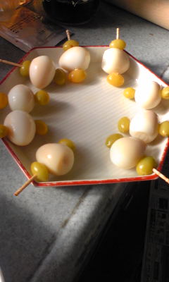 着々と進むお節達p(^^)q ちび太のおでん?いえいえウズラの卵と銀杏(^O^) ローストビーフに白身魚のマリネ そして定番のタツクリ,キンピラ、栗きんとんに煮物 カズノコも塩抜き中で まだまだもう少し用意がかかります(笑)