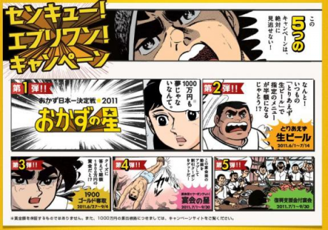 ただいまです~今朝もさっそくブログアップしてます~東京のあちらこちらでこのポスターを見かけました これって飲みに行く時に欠かせないもの「ホットペッパー」でも見かけたなぁセンキューエブリワンキャンペーン巨人の星思いこんだら試練の道を~熱い仲間が暑く・・・失礼熱く訴えるのは5つのテーマ何はともあれ「おかず日本一決定戦おかずの星」日本全国からおかずを募集中6月14日現在投稿数583投稿したレシピの中でまずは300が投票ステージに進出ウェブに掲載された300のレシピをクリック数によって大会ステージに主催するモンテローザが運営するのは白木屋、魚民、笑笑などみんなが知ってる居酒屋1100店舗以上でまな板に・・・いや メニューに登りますベスト10のメニューは3ヶ月間提供され売れた数を集計しランキングを決定最終ベスト3のレシピには売り上げに応じて報酬が支払われます1位は販売期間中の売り上げの10%2位は5%3位は3%300円のメニューが1000店で1日5品売れれば売り上げは150万円90日間で売上1憶3500万円10%で1350万円1000万円も夢じゃありませんおぉ・・・これはすごいこれはやる気が出るよねぇ単価の安い方がたくさん注文される可能性があるから有利なのかなお料理上手のあなた・・・いかがですか