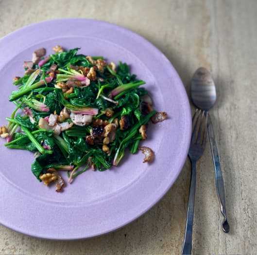 ナッツとベーコンと一緒にソテーしました。