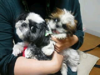 元気になりました! ご心配おかけしました。 みなさんから、優しい言葉をかけていただいたのに、おひとりおひとりにお返事も出さずにごめんなさい。 m(_ _)m 薬は飲んでますが、すっかり元気になり、我が家には笑い声と「こら~」の声が響いてます。 私は、娘一人しかいませんが、子供が二人三人いるってこんな感じかな…と こっちのごはんを用意しながら、こっちを見張って、おしっこやら水やら てんてこ舞い状態です。 でも、嬉しいね~楽しいね~ 長男犬ファファは、ぷ~が苦手… 近づくと震える。 仕事は忙しく 「も~ヤダ!!」と色んな事投げ出したくなりますが、 (この子達は、私がいなくちゃ生きていけない…)と思うことで私がなんとか生きている。 同じ仕事仲間が、 「気持ちが弱っているときに、癒されるものをみてはいけない。つれて帰りたくなるから…」と言っていた。 彼女のうちには、三匹わんこがいる。 ファファとぷ~は これから私達と生きていく。 先に逝ってしまう可能性が高いけど、家族は四人。 あえてポジション人と同じにしました。 頑張って働かないとね(`∇´ゞ