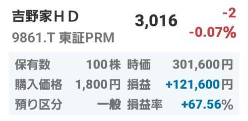 2002 1 10 日に1株 180,000 円で購入(株式併合、株式分割で 100 株単位に変更)した​ 9 ​861 吉野家HD​ ​から第 69 期末配当金( 1 株あたりの配当金 11 円 配当金額 1,100 円)計算書、 2026 11 30 日まで有効の株主優待券 2,000 円分( 500 円券 4 枚)が送られてきた。