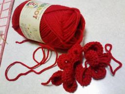 今日も 編み編みへアゴム作り~モチーフだとちょっとした時間で、出来上がるし動かないで良いから コタツに入って 編み編み・・・毛糸ピエロ♪ 【214】ソフトメリノ214-9(レッド) を使用~こんな くりくり花びらを編んで、後で止めて、こんな 花びらがもこっと丸まったモチーフになります。こちらを いつものように ゴムに付けて、今回は ニットボールを編んで、ゴムにくっ付けてみましたピエロさん♪ でこのソフトメリノの毛糸を4色買いましたが【214】ソフトメリノ(ブラウン) の色はちょっと思ってた感じではなくって・・毛糸の色合いって、パソコン画面でみるのと実物が違うから( 我が家のパソコンだけ??)沢山買うときは 慎重に買わないと・・ですね。