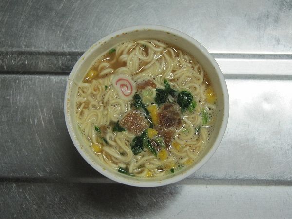 麺はカップヌードルならではのスナック麺タイプとなっており、柔らかめの食感なのですが豚骨エキスがしっかりと染みているような味わいなので美味しくいただけます。