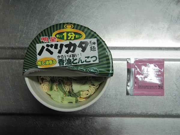 1分で、かたはが旨い!というフレーズでお馴染みとなっているバリカタ細麺シリーズ。いろんなスープが登場してきましたが今回は焦し油香る香油とんこつです。