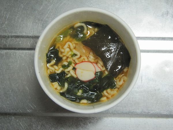 お湯を入れて4分、蓋を開けてよくかき混ぜれば完成。スープの見た目が辛そうだったので唐辛子の香りがしてくるのかと思ったのですが昆布の良い香りがしました。