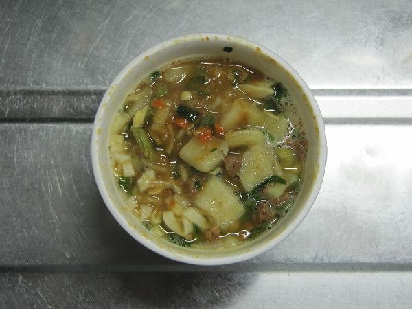 麺はスナック麺タイプのうどん麺といった感じでかなり柔らかめとなっていますが、麺風リゾットというような麺におつゆが染みこんだような味わいなので美味しいです。